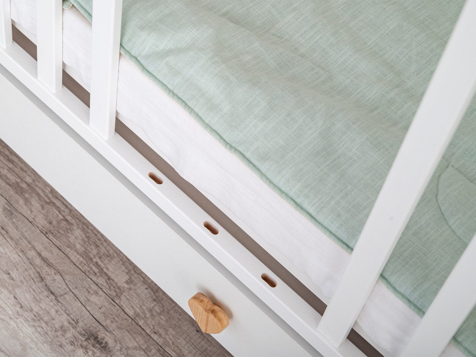 The Dreamy cot bed is designed to make your baby’s first years comfortable, safe, and full of warmth. Made entirely of solid beech wood, it impresses with its natural beauty and durability. Every part is carefully sanded and finished with a child-safe, non-toxic varnishc, ensuring both aesthetics and safety. The slightly rounded edges protect your baby during sleep and play.