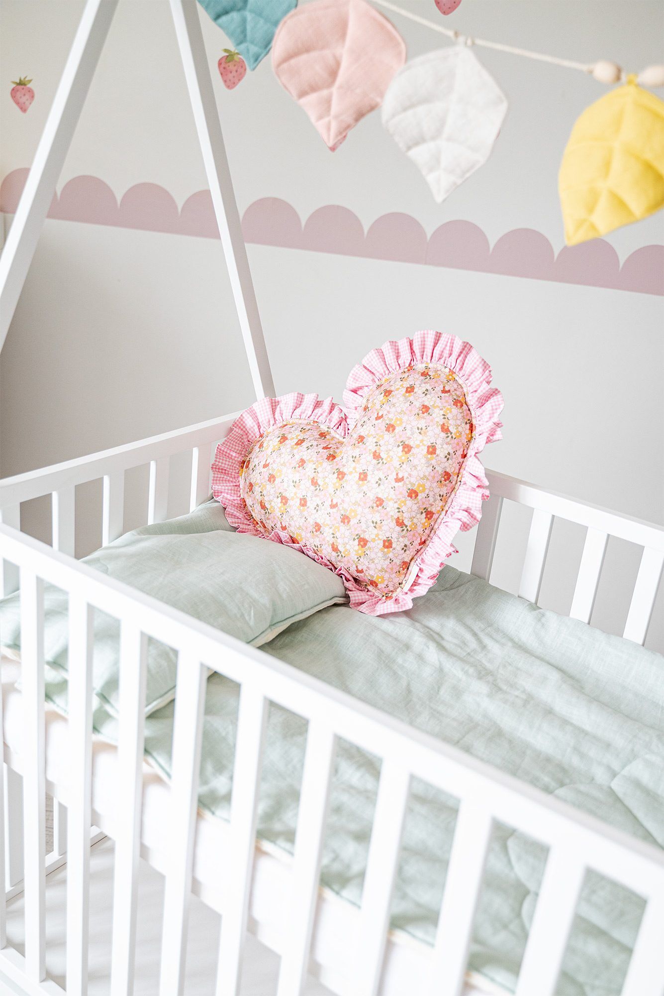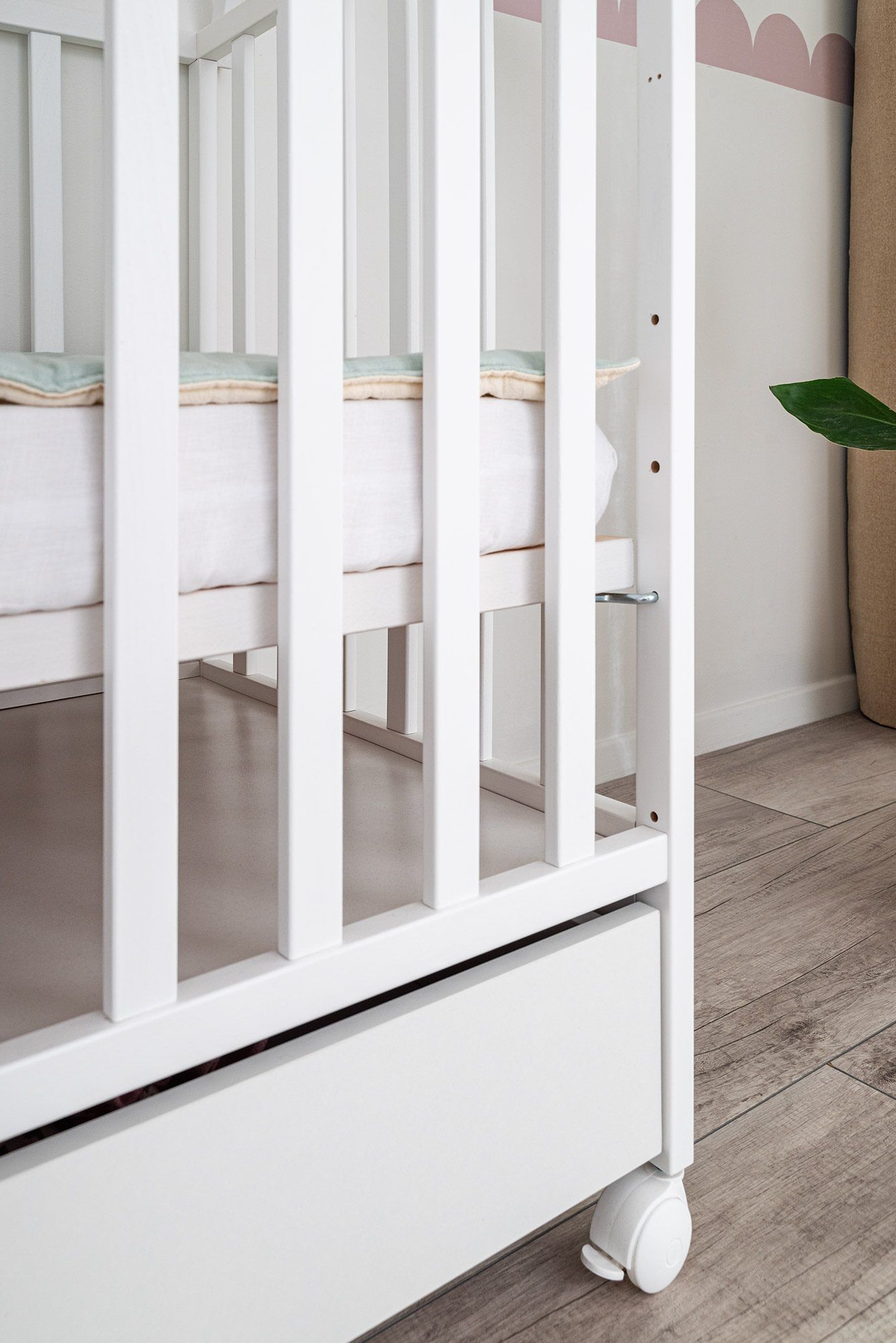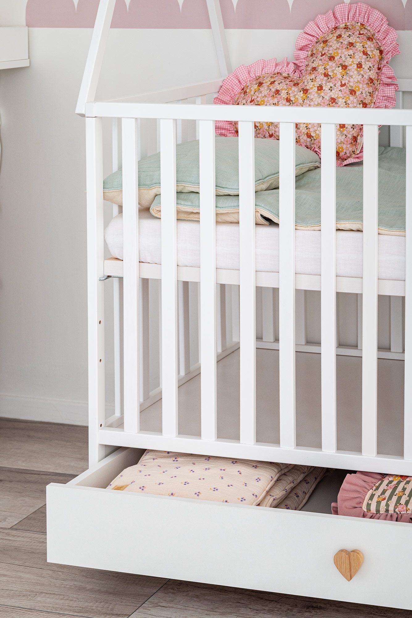 The tipi-style frame above the cot gives the room a cozy and creative character. It can be used to hang a canopy, soft toys, or garlands — anything that captures your baby’s attention and supports sensory development. The minimalist Scandinavian form fits beautifully into both modern and classic interiors.