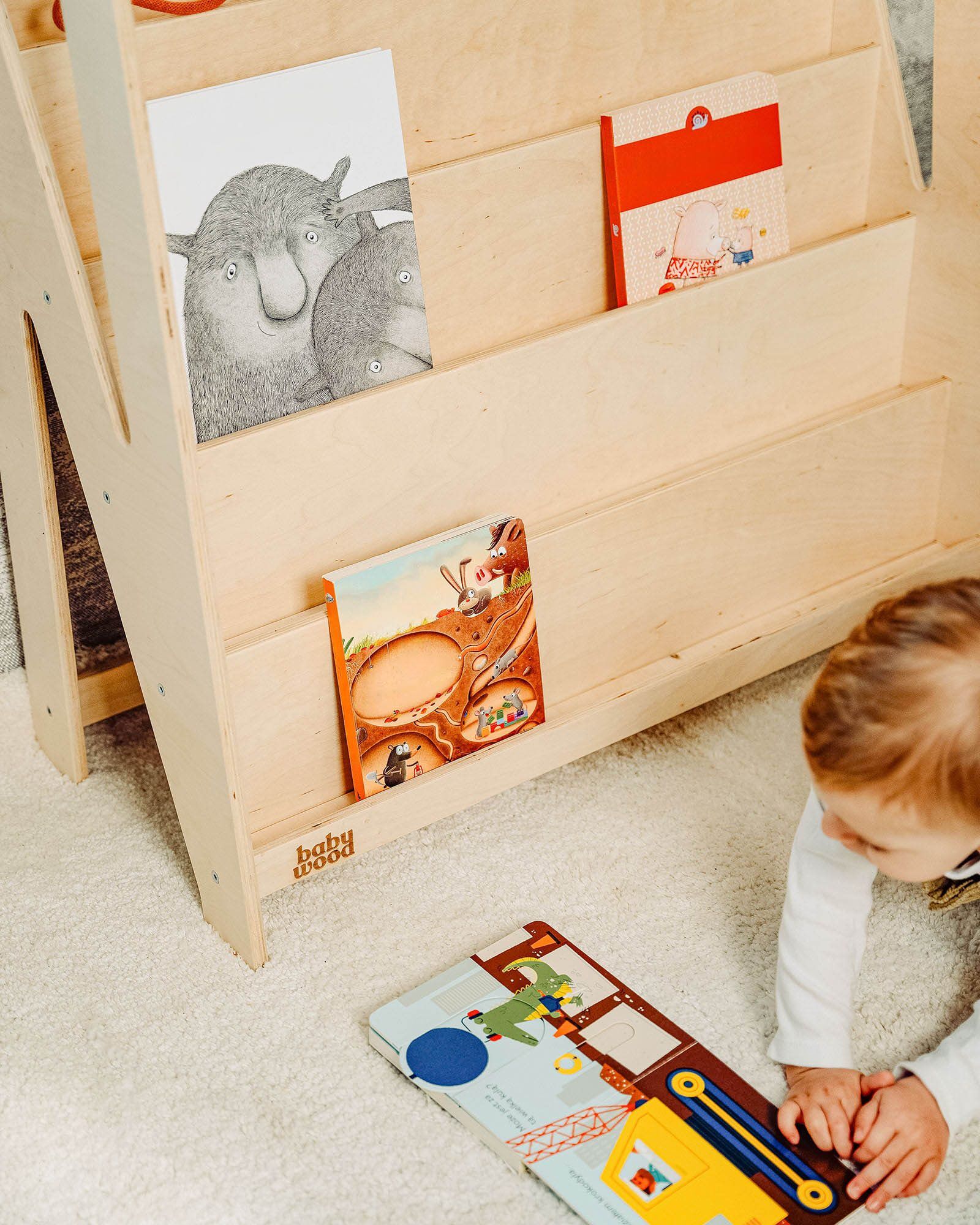 The height layout is designed so that even the youngest user can reach and use it independently. Lower levels are for everyday picks, while the upper ones are perfect for items parents want to keep an eye on. The spacing between shelves fits books of various sizes without squeezing or bending covers.