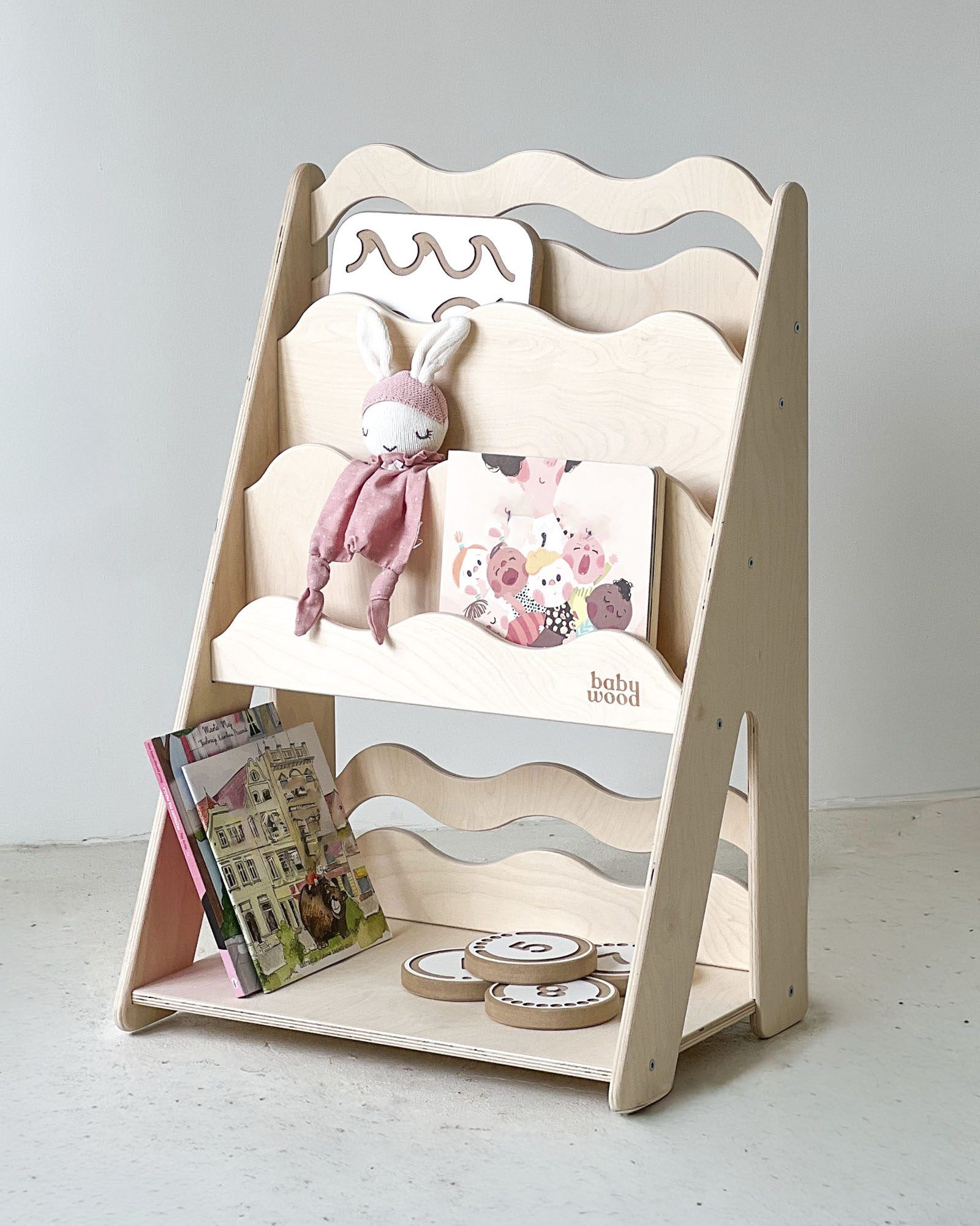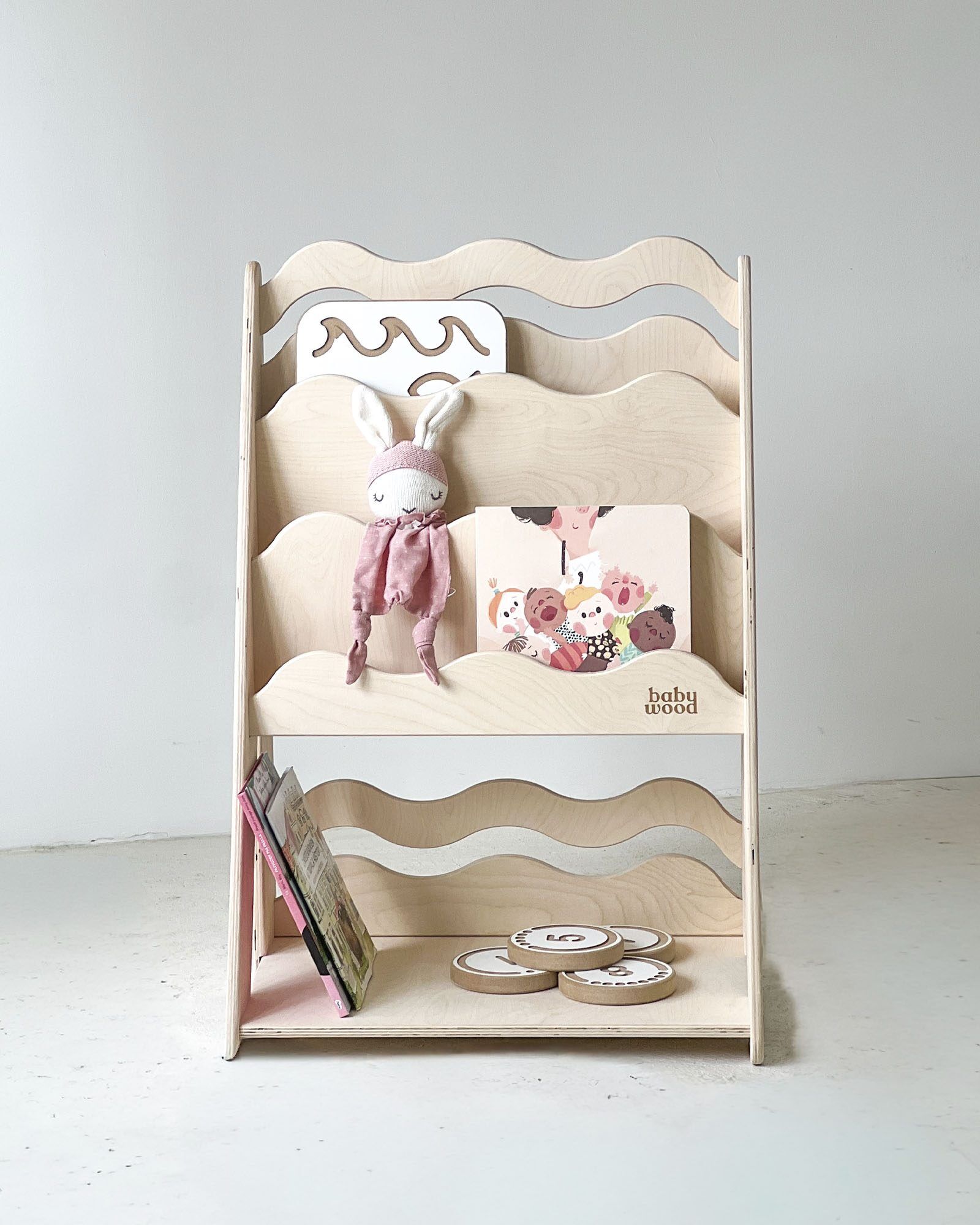 Incl. VATImagine a corner where all your child’s favourite books, toys and treasures have their own place. A piece of furniture that combines order with aesthetics and invites your little one to put things away independently. Books and Toys Shelf WAVE S was created with everyday routines in mind, following the Montessori philosophy – so that everything your child needs is always within easy reach. The gently curved front gives the structure a light and harmonious look while subtly displaying the items on the shelves. Thanks to its low form and well-thought-out depth, the Books and Toys Shelf WAVE S works perfectly both as a bookcase and a toy shelf. It keeps the space tidy and at the same time encourages children to act on their own terms.