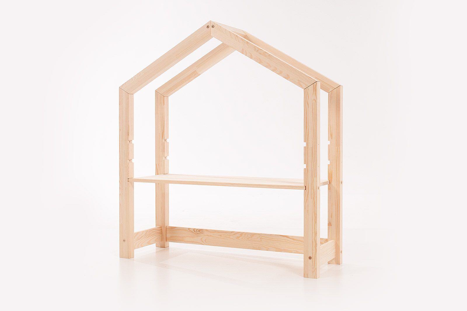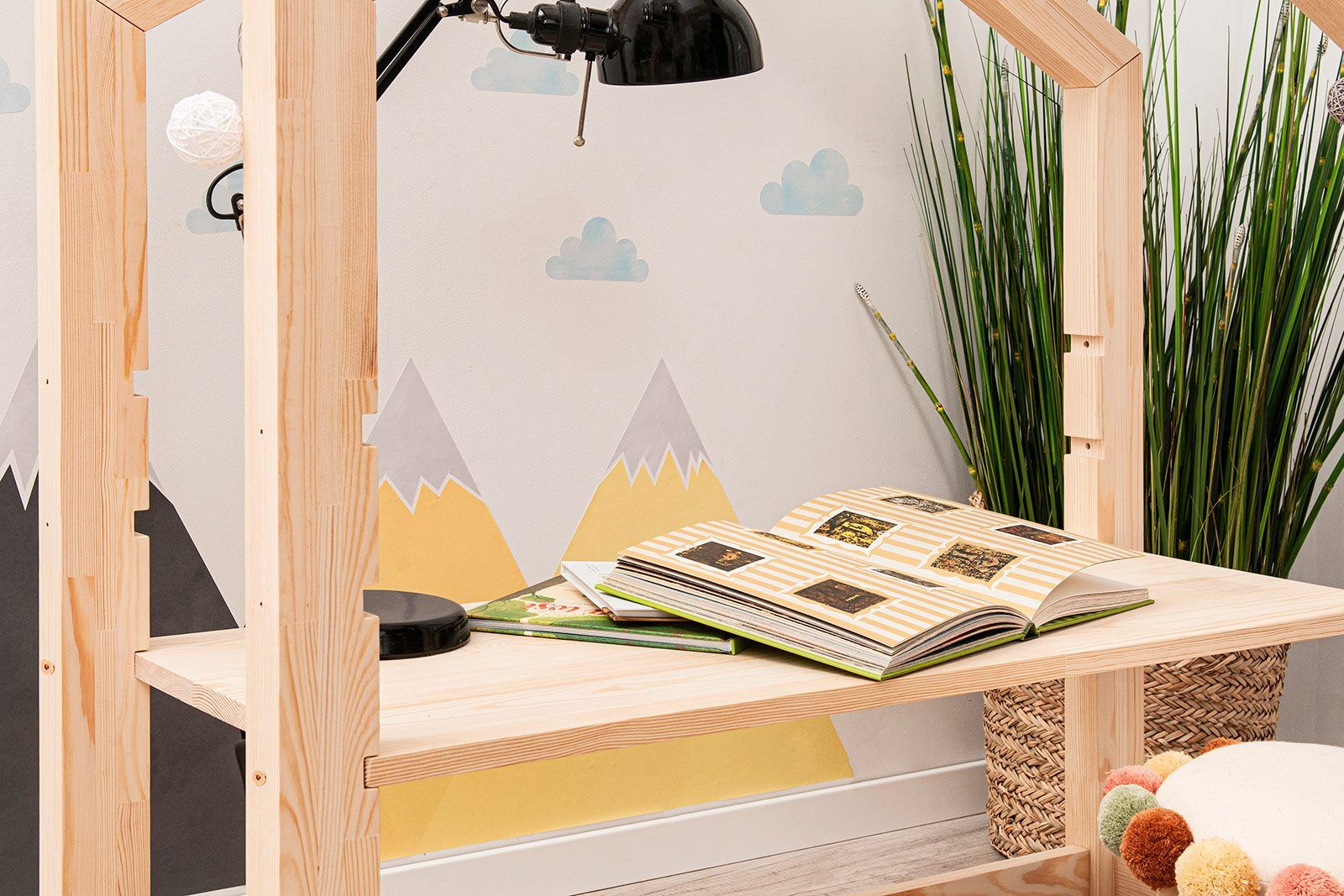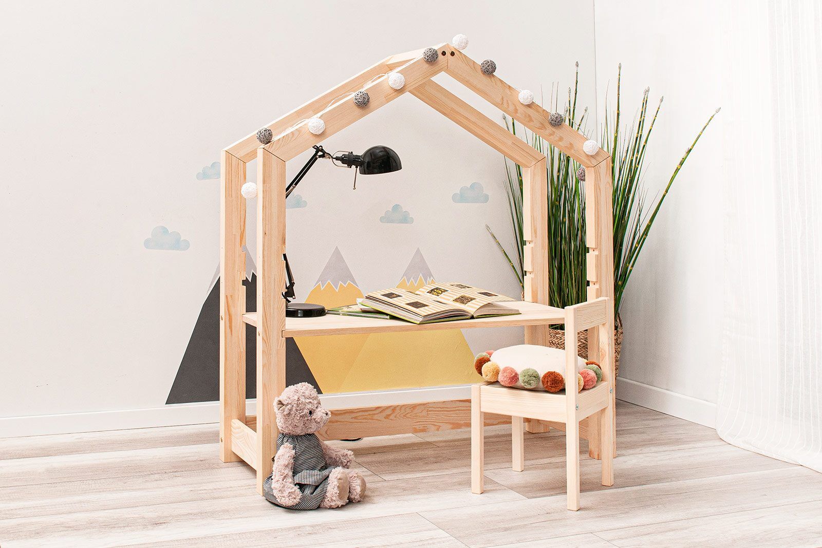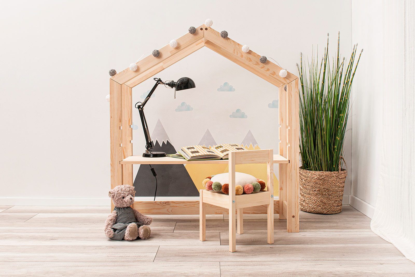 Incl. VATA children’s desk in the shape of a house made of natural pinewood. The desk blends in perfectly with our cots and other furniture, together creating a harmonious design for your child’s room.