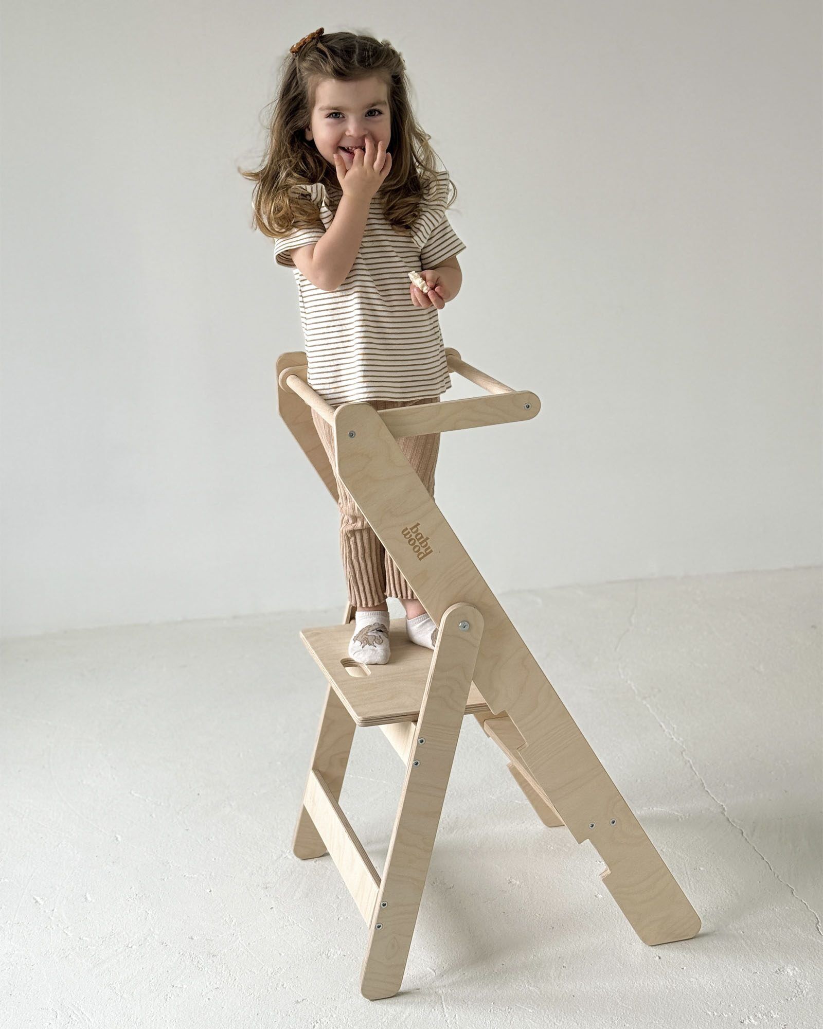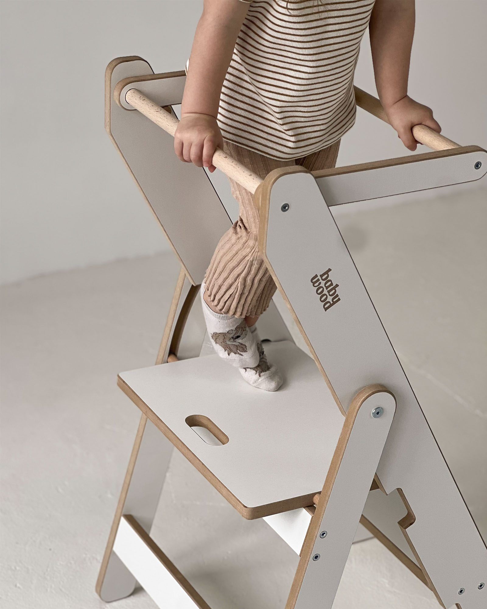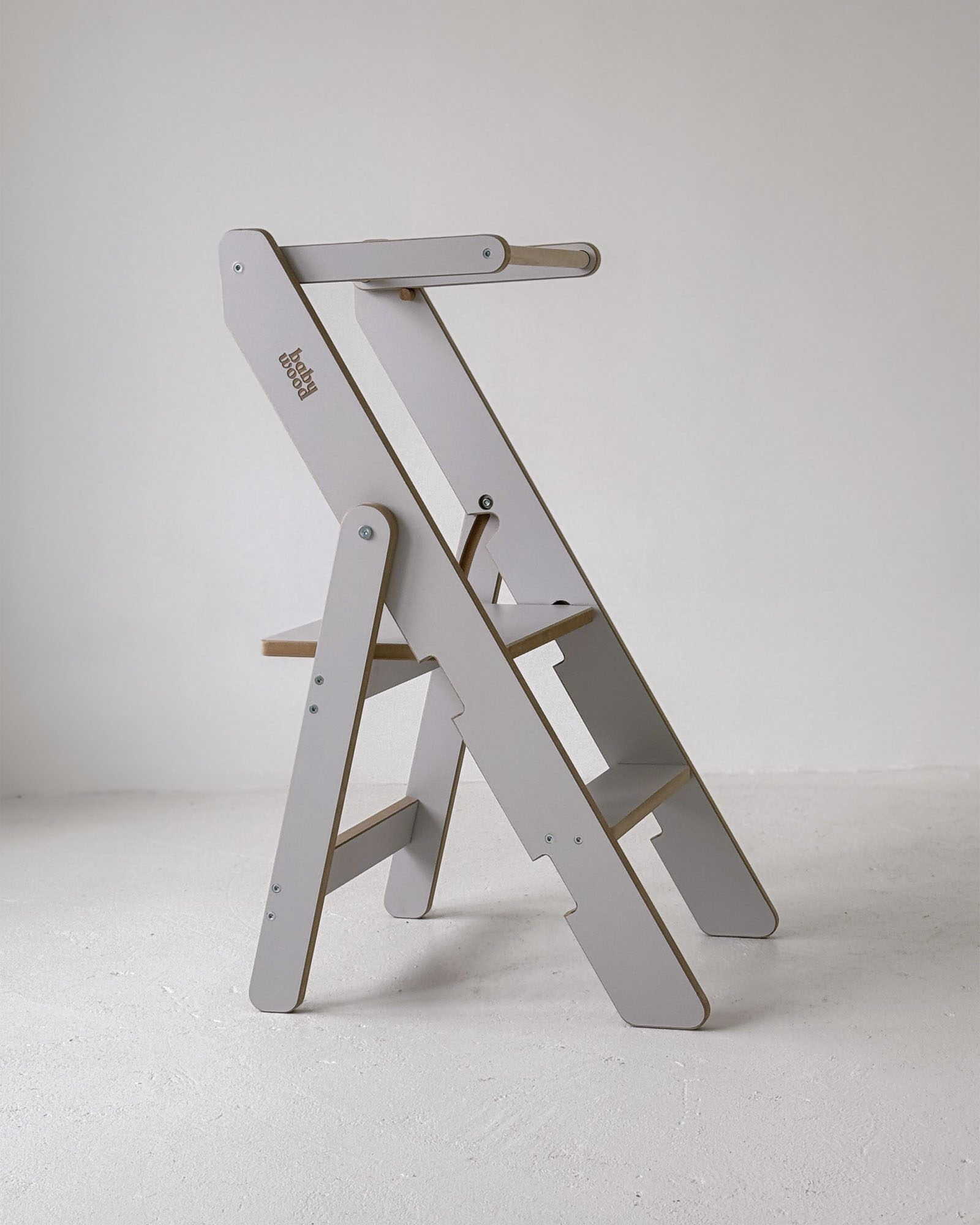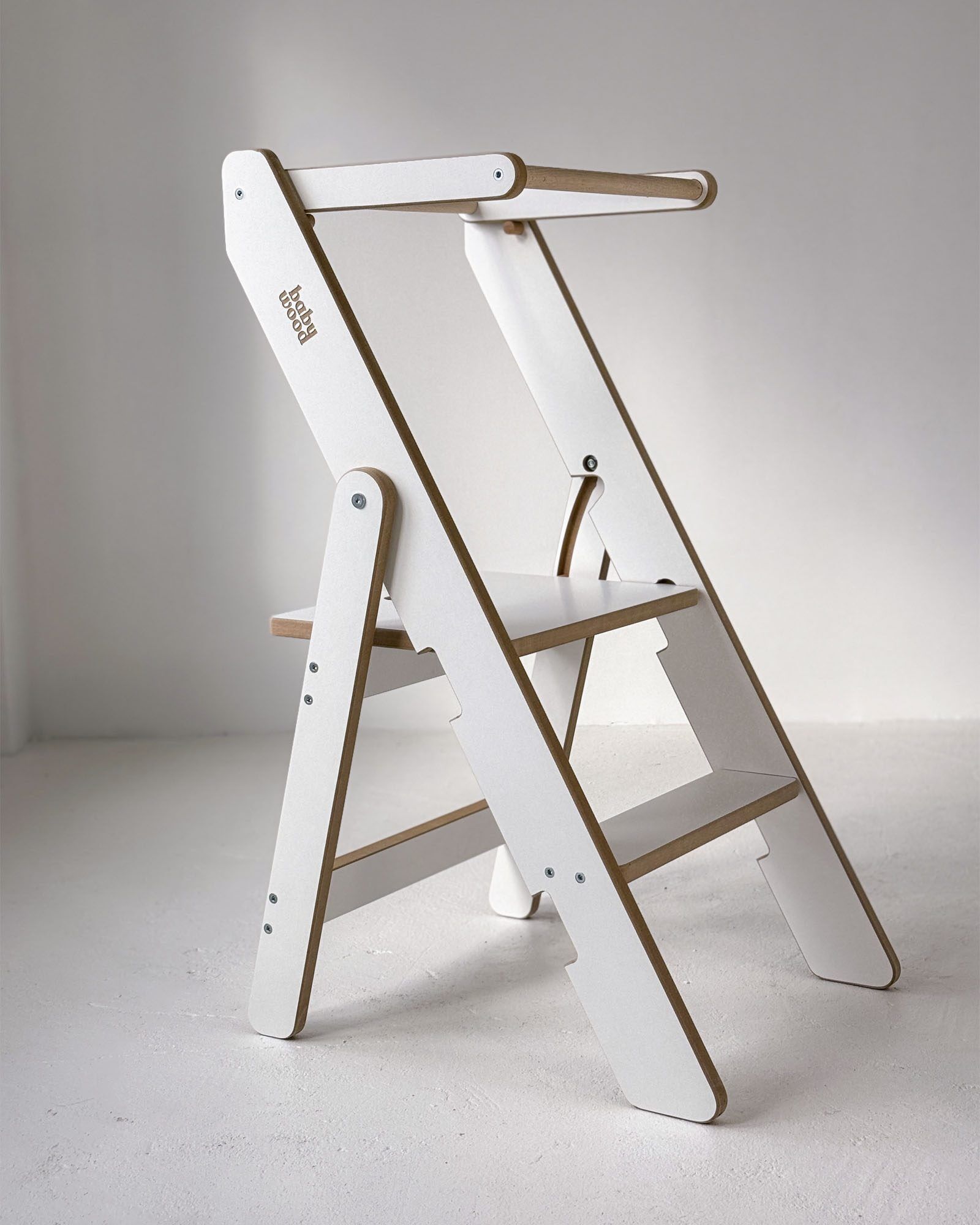 This model has one feature that truly stands out. It is foldable. When folded, it becomes the smallest Kitchen Helper available. The clever construction allows easy folding and storage, making it a perfect solution even for small kitchens. Your child can safely join you in the kitchen while you enjoy more free space for daily tasks.