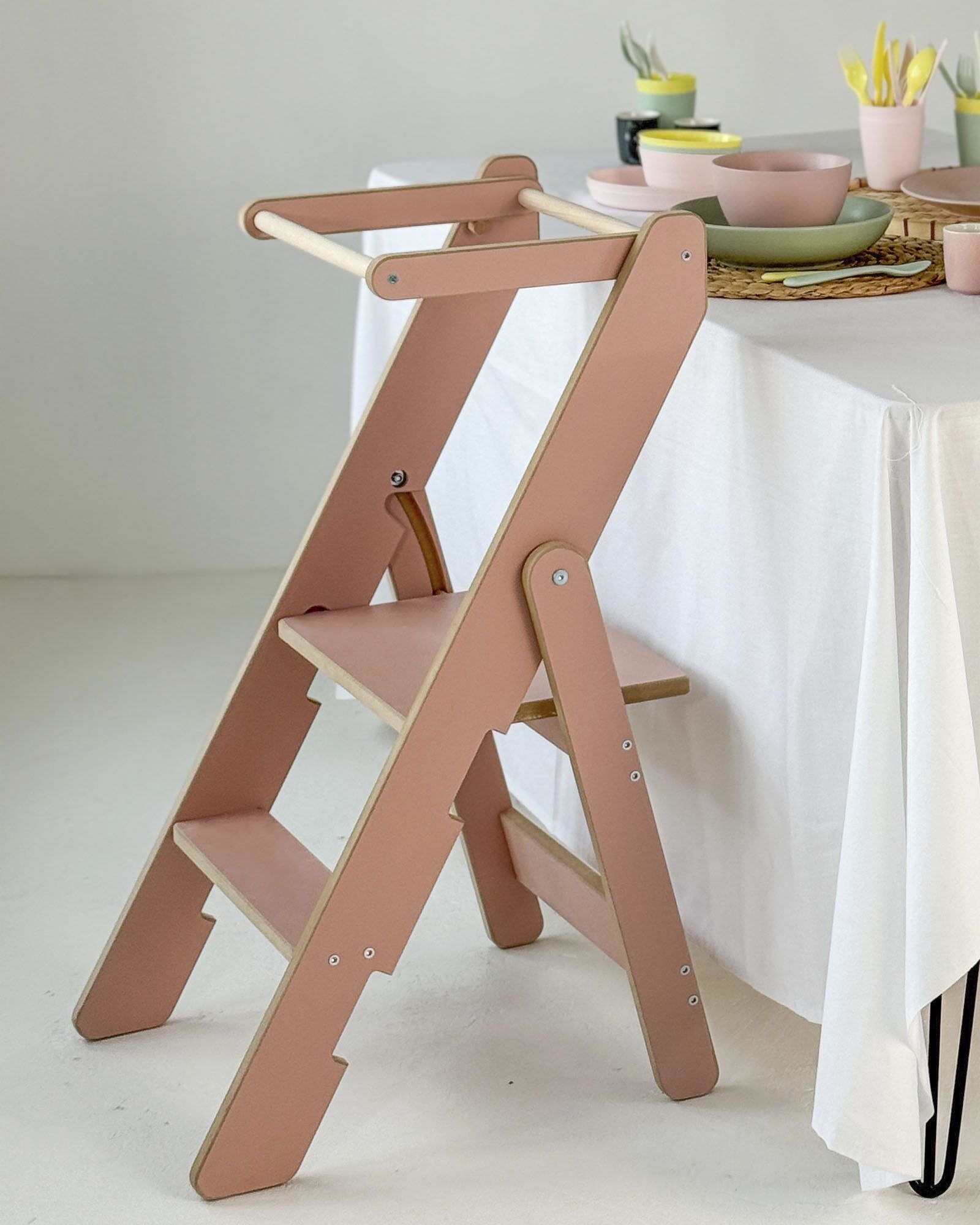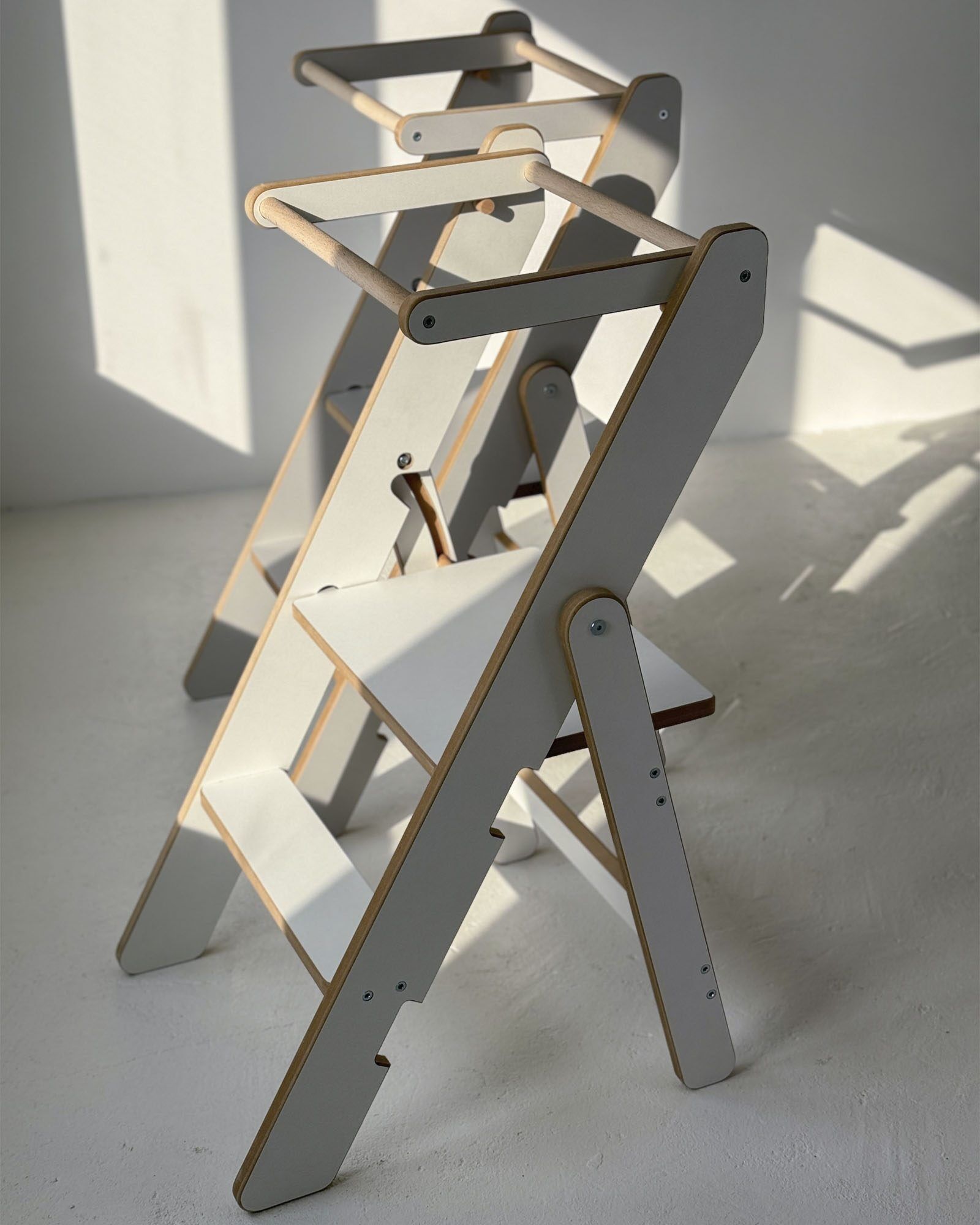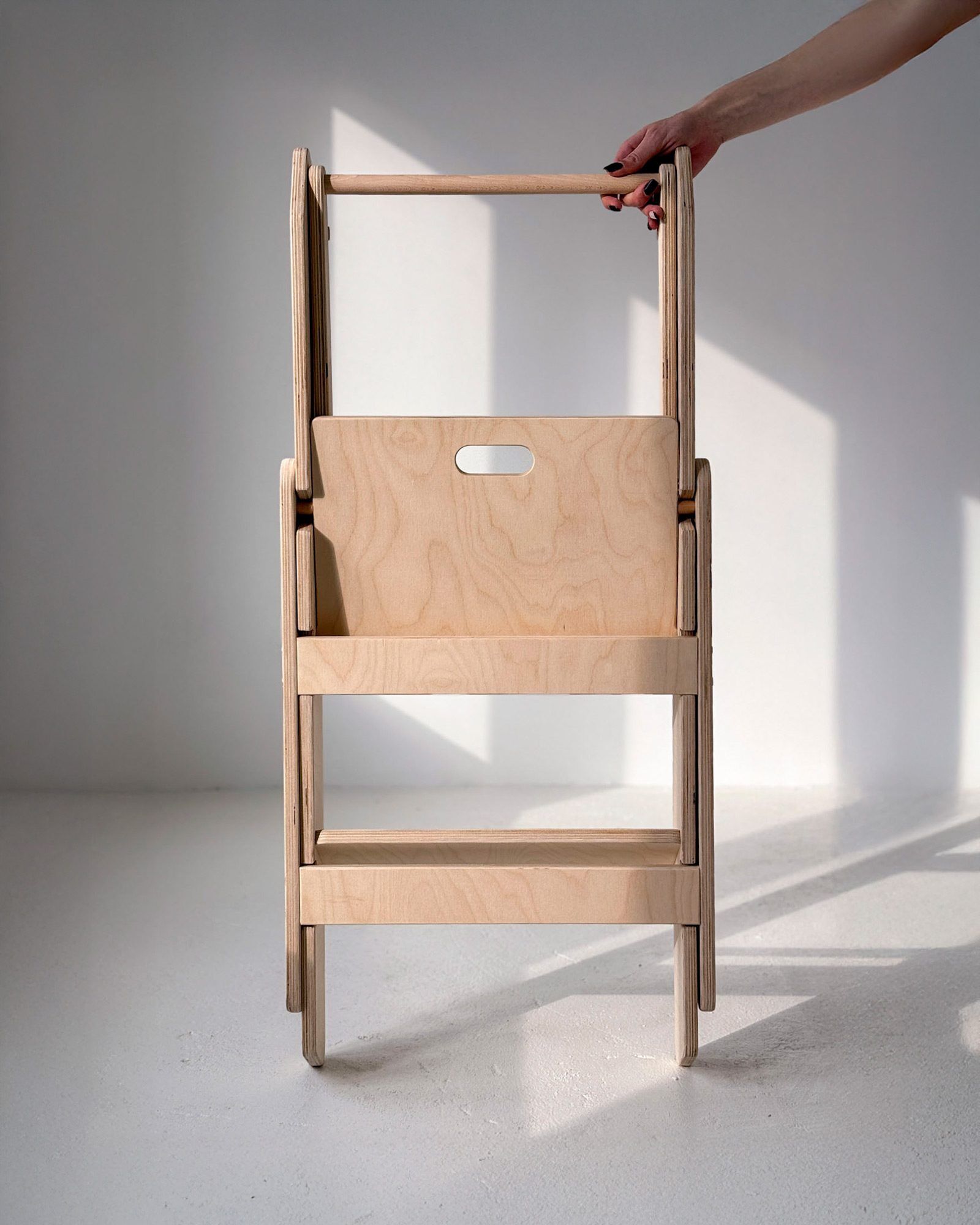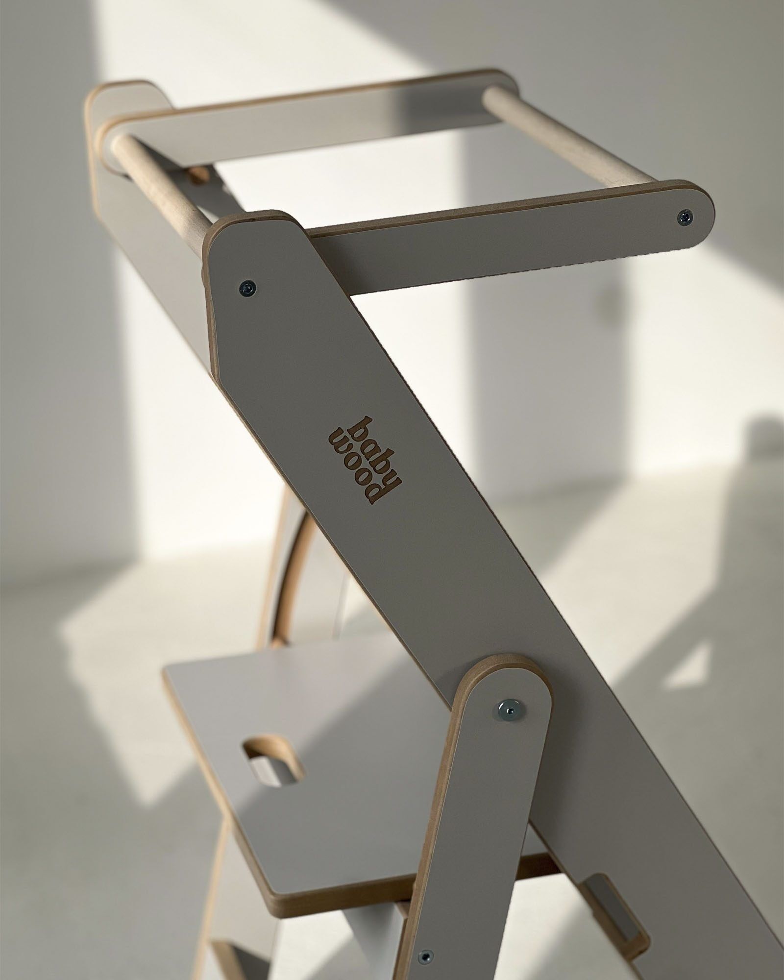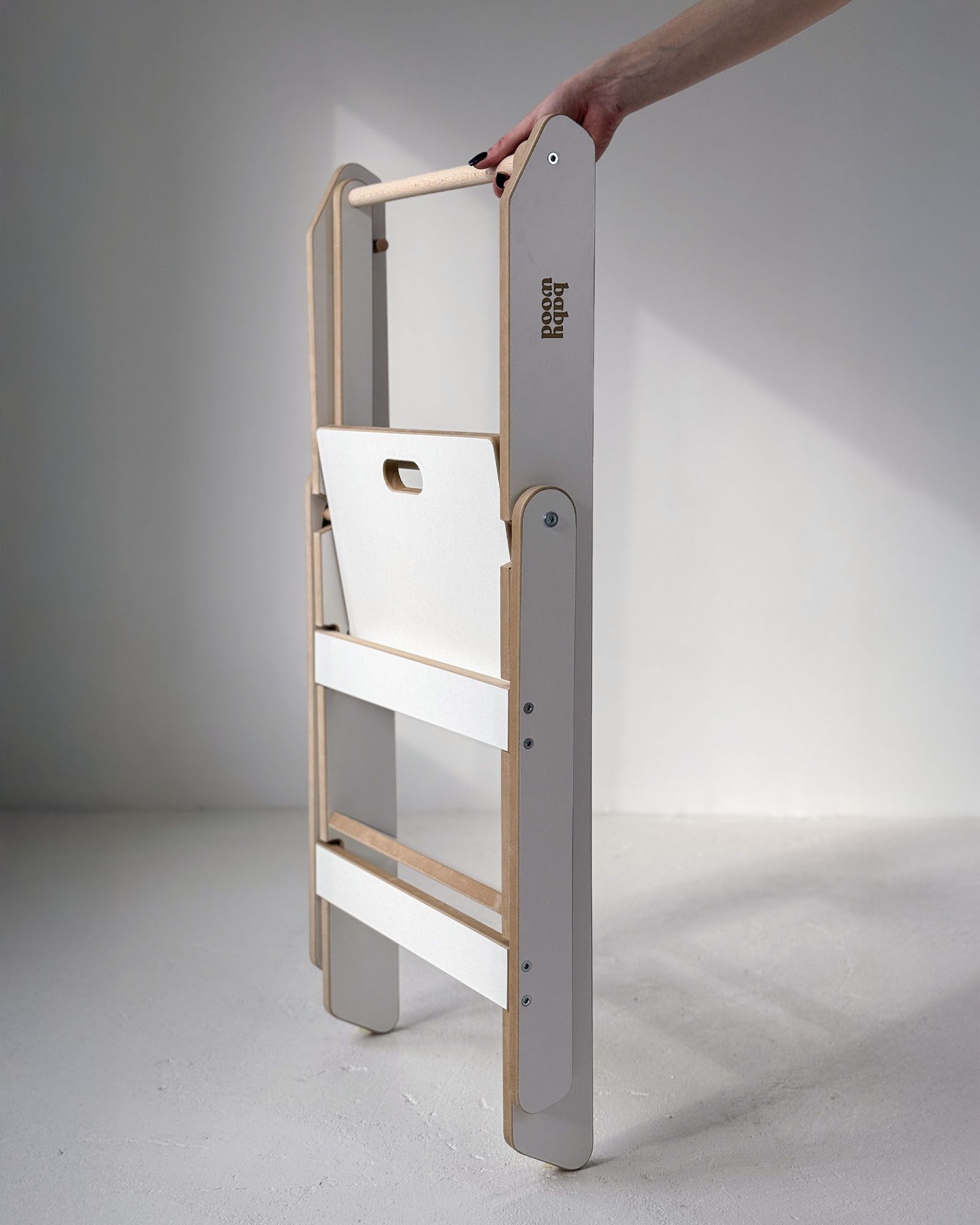 This model has one feature that truly stands out. It is foldable. When folded, it becomes the smallest Kitchen Helper available. The clever construction allows easy folding and storage, making it a perfect solution even for small kitchens. Your child can safely join you in the kitchen while you enjoy more free space for daily tasks.