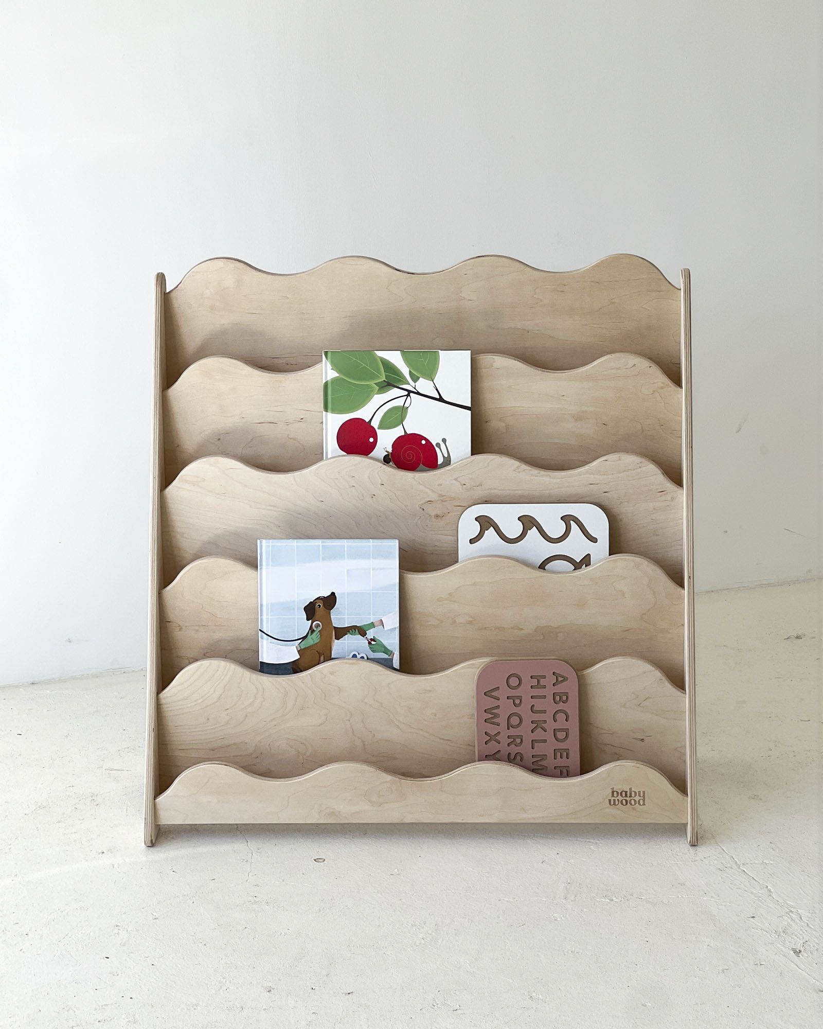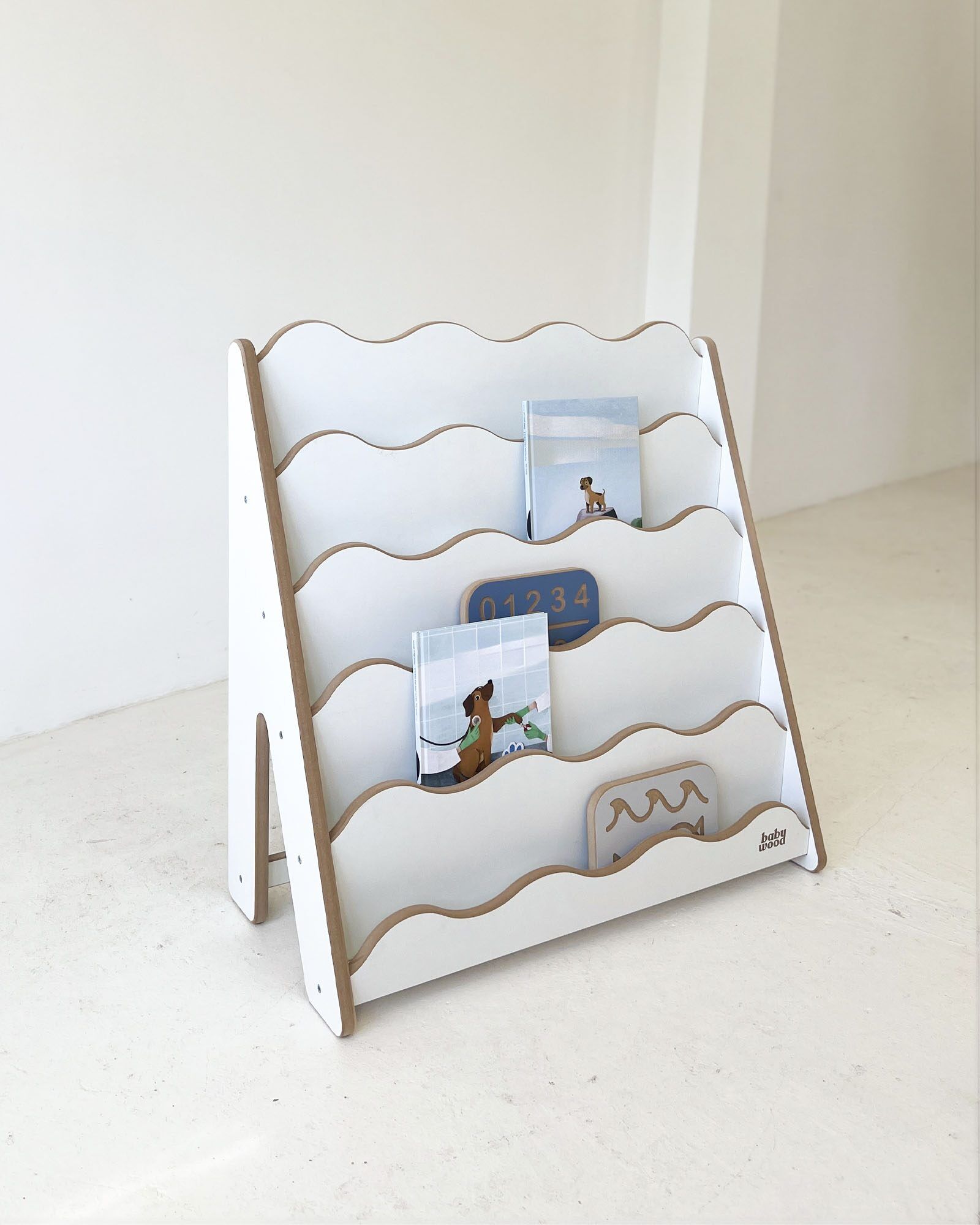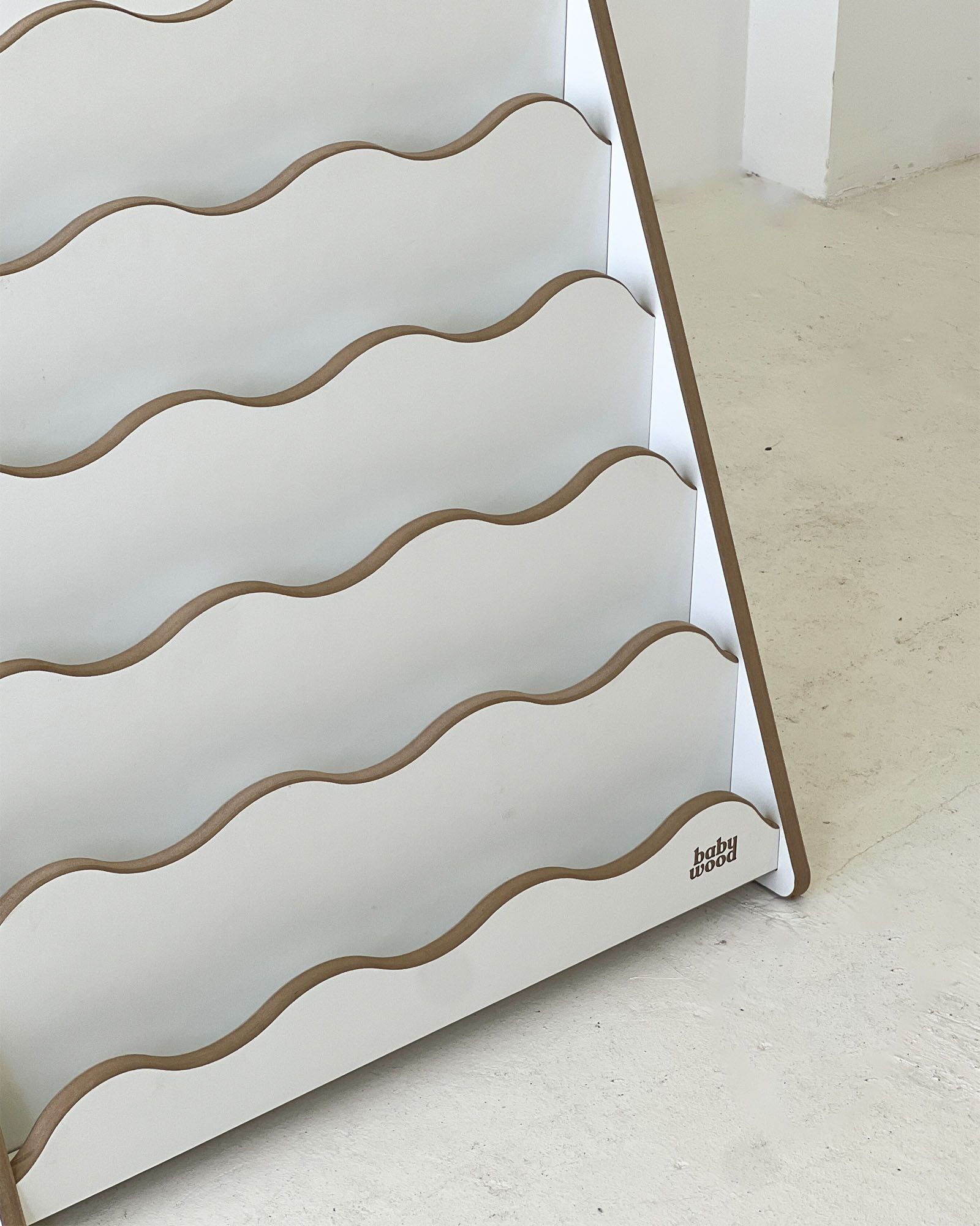Incl. VATFront-Facing Bookcase WAVE M is an elegant, functional children’s bookcase that keeps the space tidy and invites little readers to reach for books every day. The gently undulating front subtly showcases the covers, while the low, Montessori-inspired profile keeps books within easy sight and reach. It’s a piece that blends aesthetics, calm, and everyday practicality, building a beautiful ritual of shared reading.