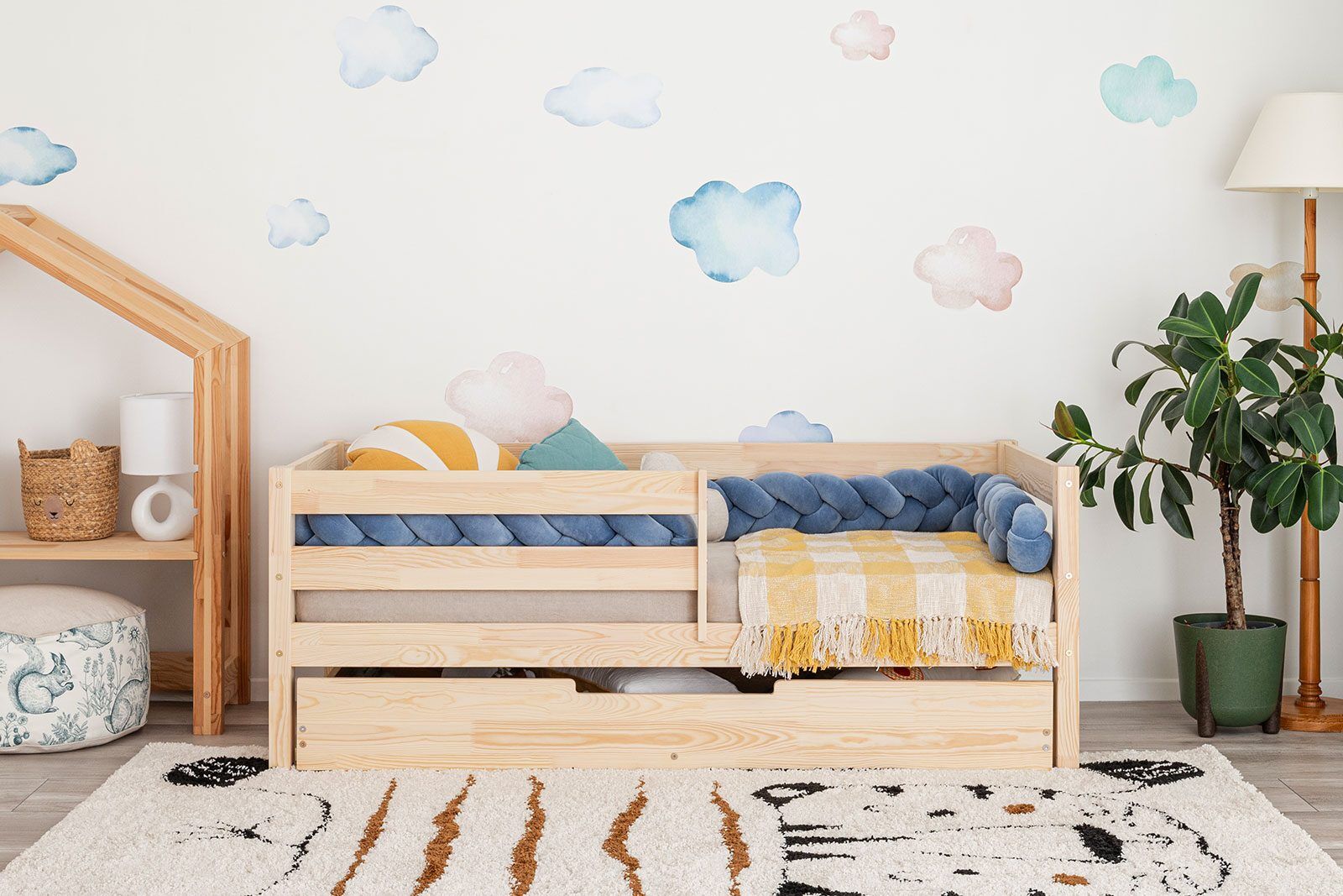 Incl. VATIt is the most classic bed model in our offer and one that will go well with any child’s room. The natural wood ensures durability, stability and your child’s feeling of security. You can additionally fit it with a drawer, which may also become an additional guest bed.