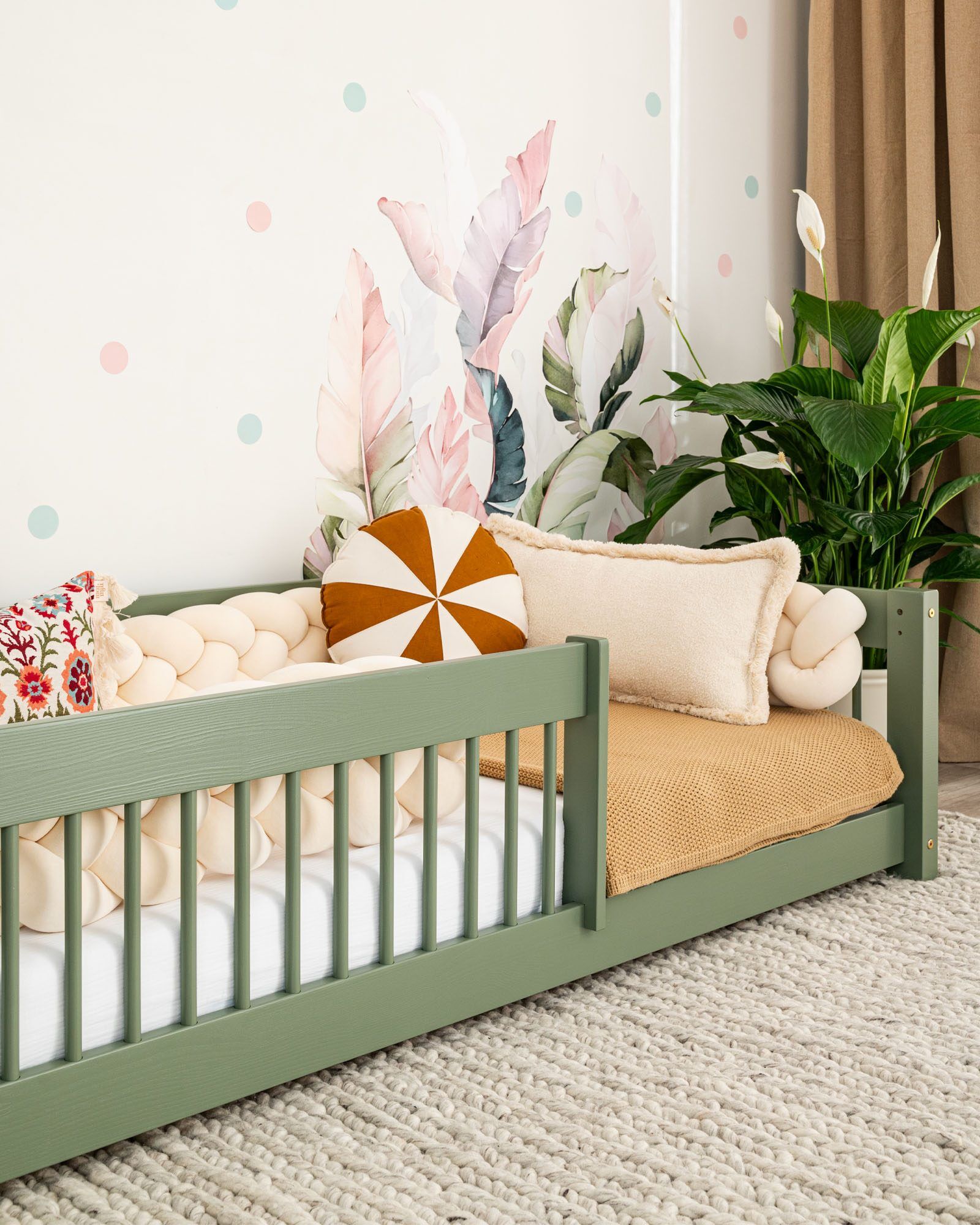 The Vedo bed has been designed in line with Montessori principles. The bed feet are only 3 cm tall, and the mattress is located low over the floor. Such a design promotes the child’s self-sufficiency and independence as it may get into the bed and out of it safely without anyone’s help.