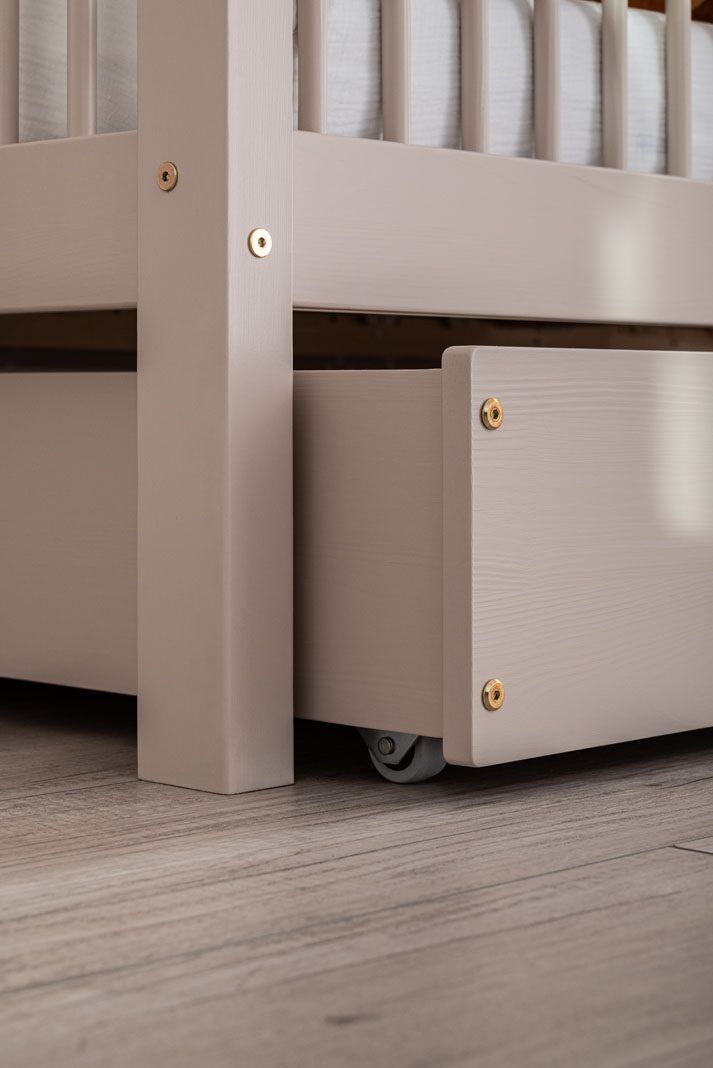 Some evenings end with “just one more story”… and some turn into sleepovers. The Vedo drawer keeps everyday routines calm and organised – easy to pull out, sturdy, and always useful. Depending on the bed width, it can serve as an extra sleeping spot or a spacious storage drawer.