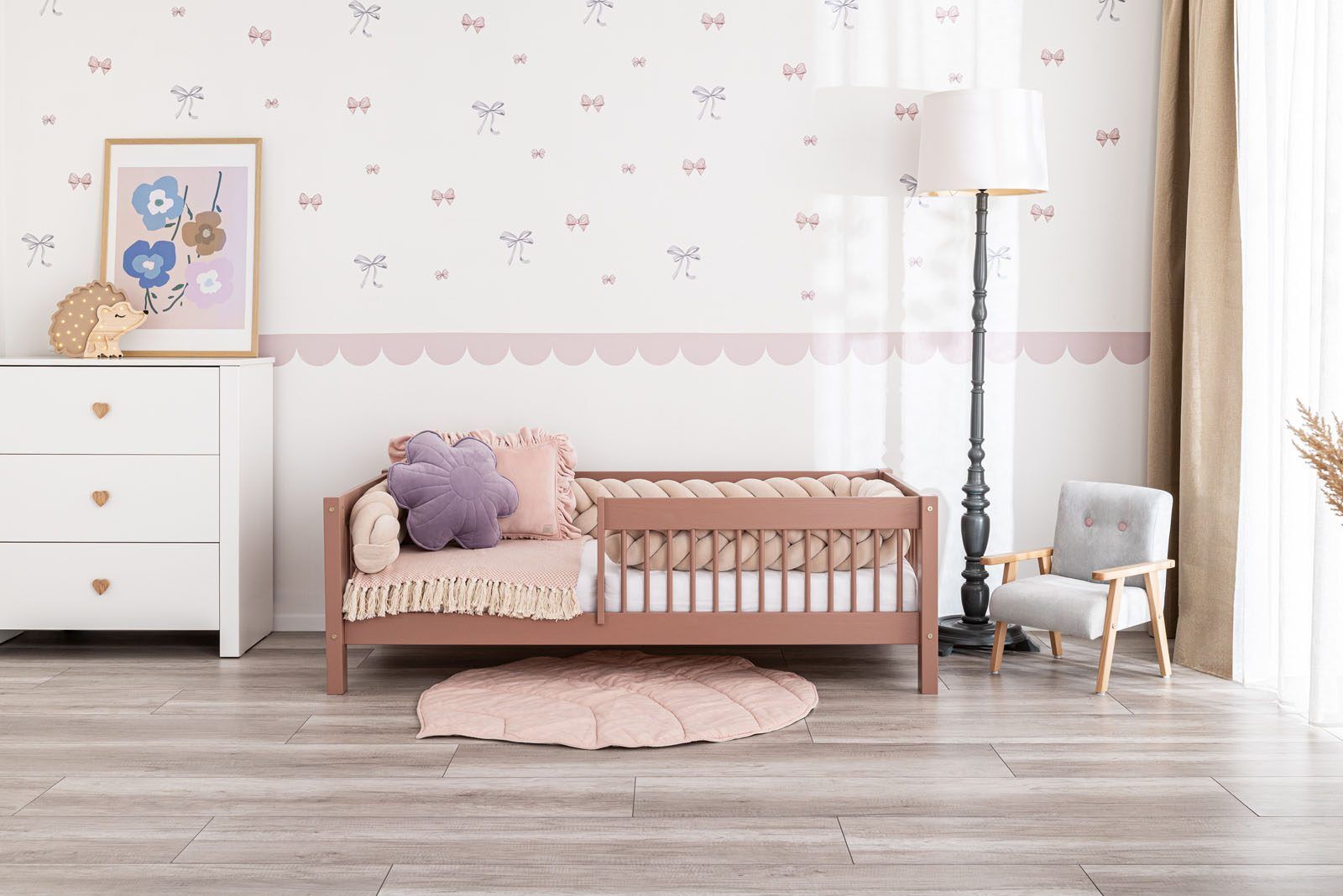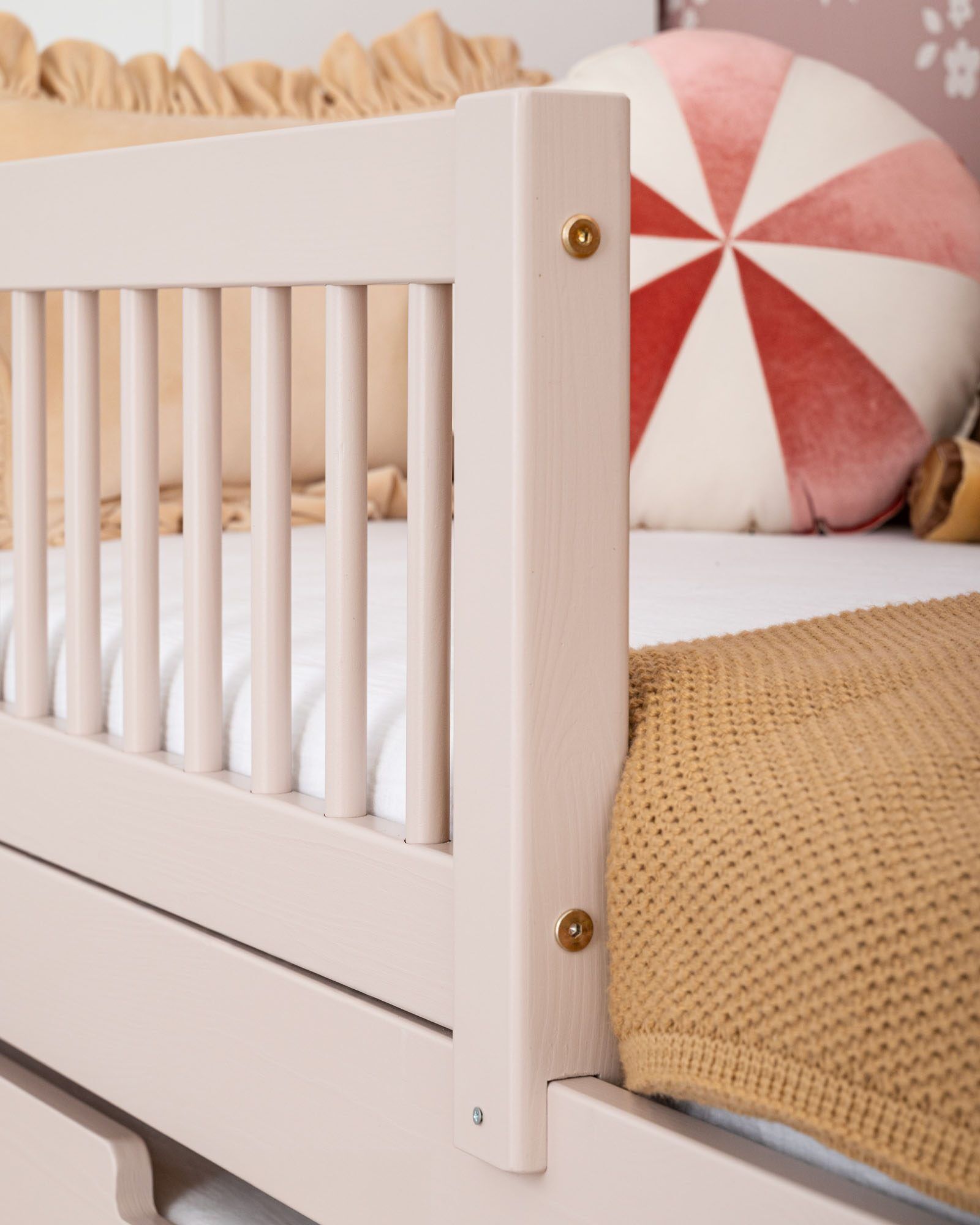Both removable and fixed safety rails are designed to work naturally with the bed frame. The removable rail can be taken off when it is no longer needed, while the fixed rail remains an integral part of the bed structure. Each solution results in a slightly different visual effect, giving you flexibility in shaping the final look of the bed.