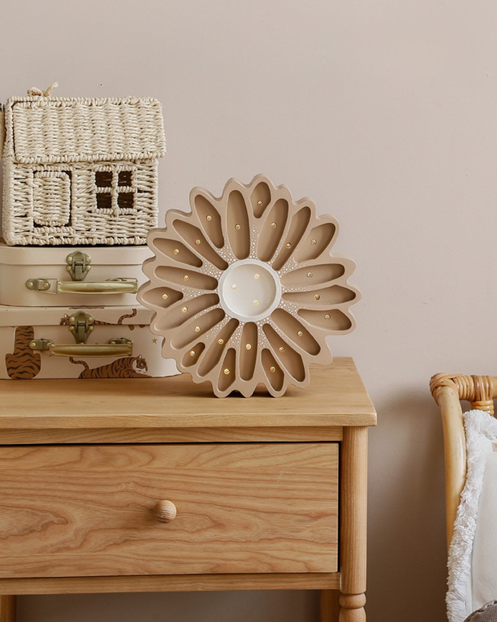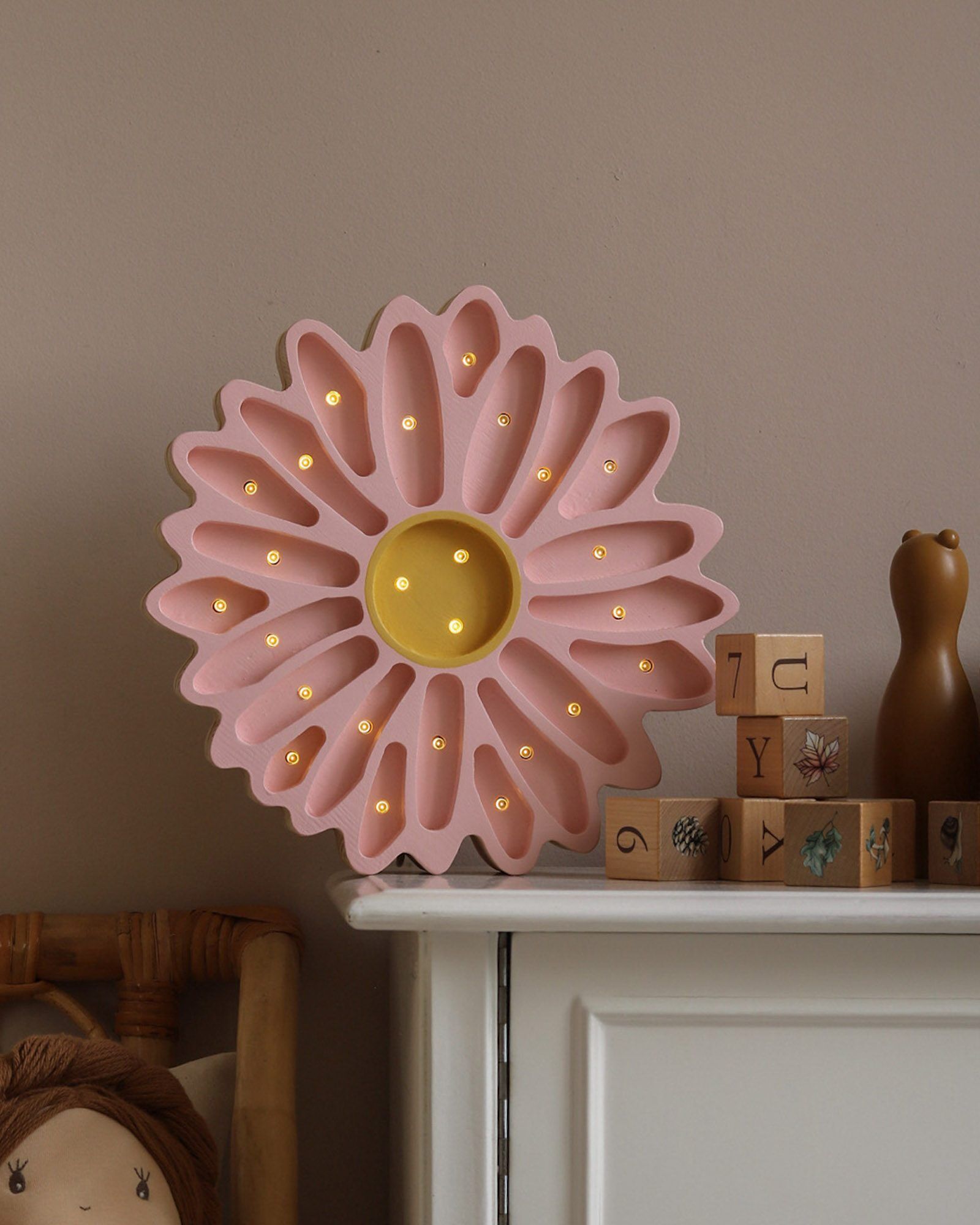 Adjust the brightness with a remote control. With the remote, you can easily control the intensity of the light – dimmer. The brightest setting is perfect for bedtime stories, while the dimmer one is ideal for drifting off to sleep.