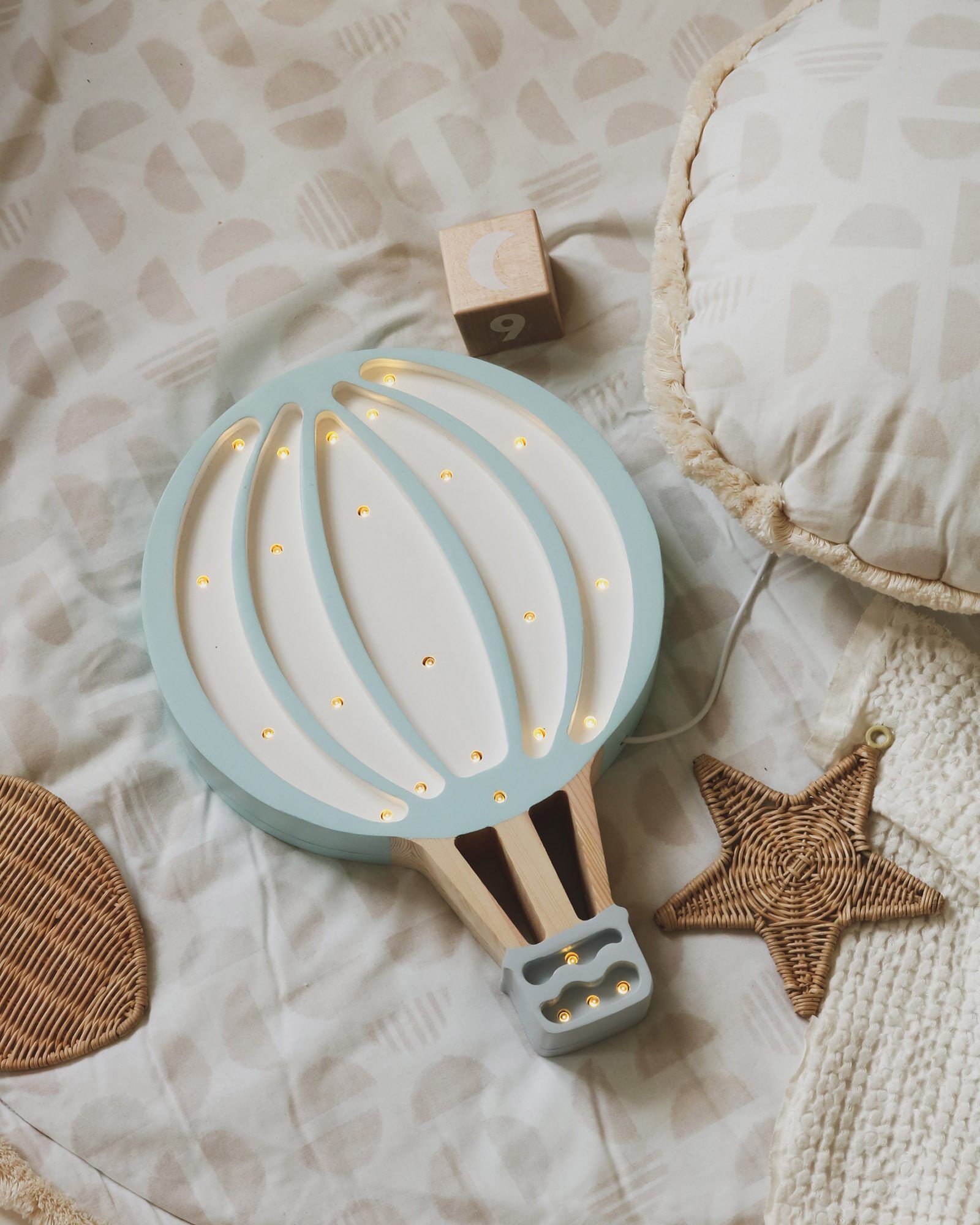 Adjust the brightness with a remote control. With the remote, you can easily control the intensity of the light – dimmer. The brightest setting is perfect for bedtime stories, while the dimmer one is ideal for drifting off to sleep.