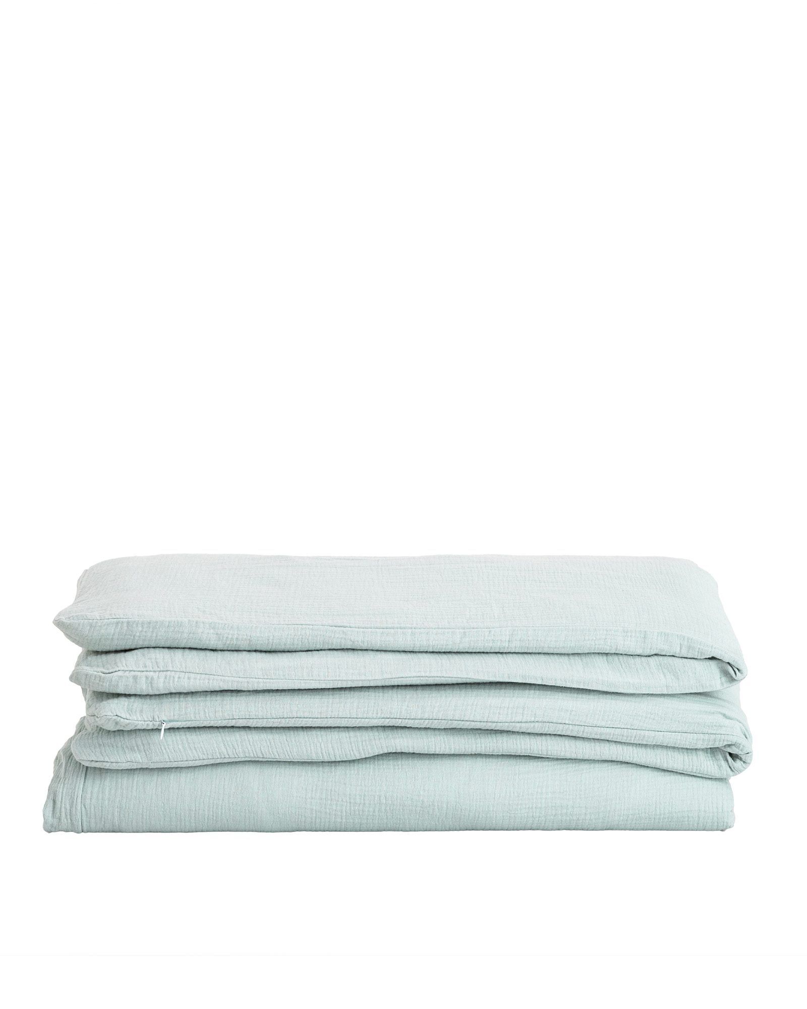 Muslin is a fine cotton fabric characterized by its loose fiber weave. This makes muslin bedding incredibly lightweight and pleasantly soft to the touch. The fabric is perfect for sensitive skin as it is 100% natural, breathable, and holds the necessary Oeko-Tex certification. It is also easy to maintain, as muslin bedding dries very quickly. Additionally, the covers feature a concealed zipper, making them both practical and unnoticeable during sleep.