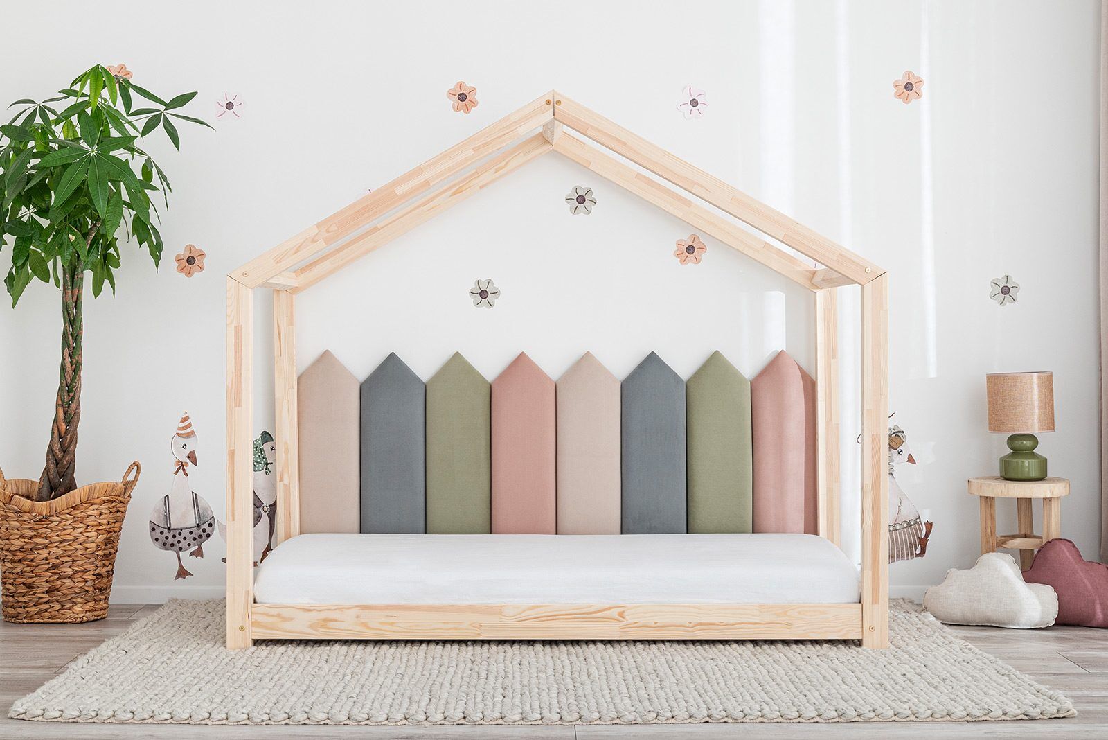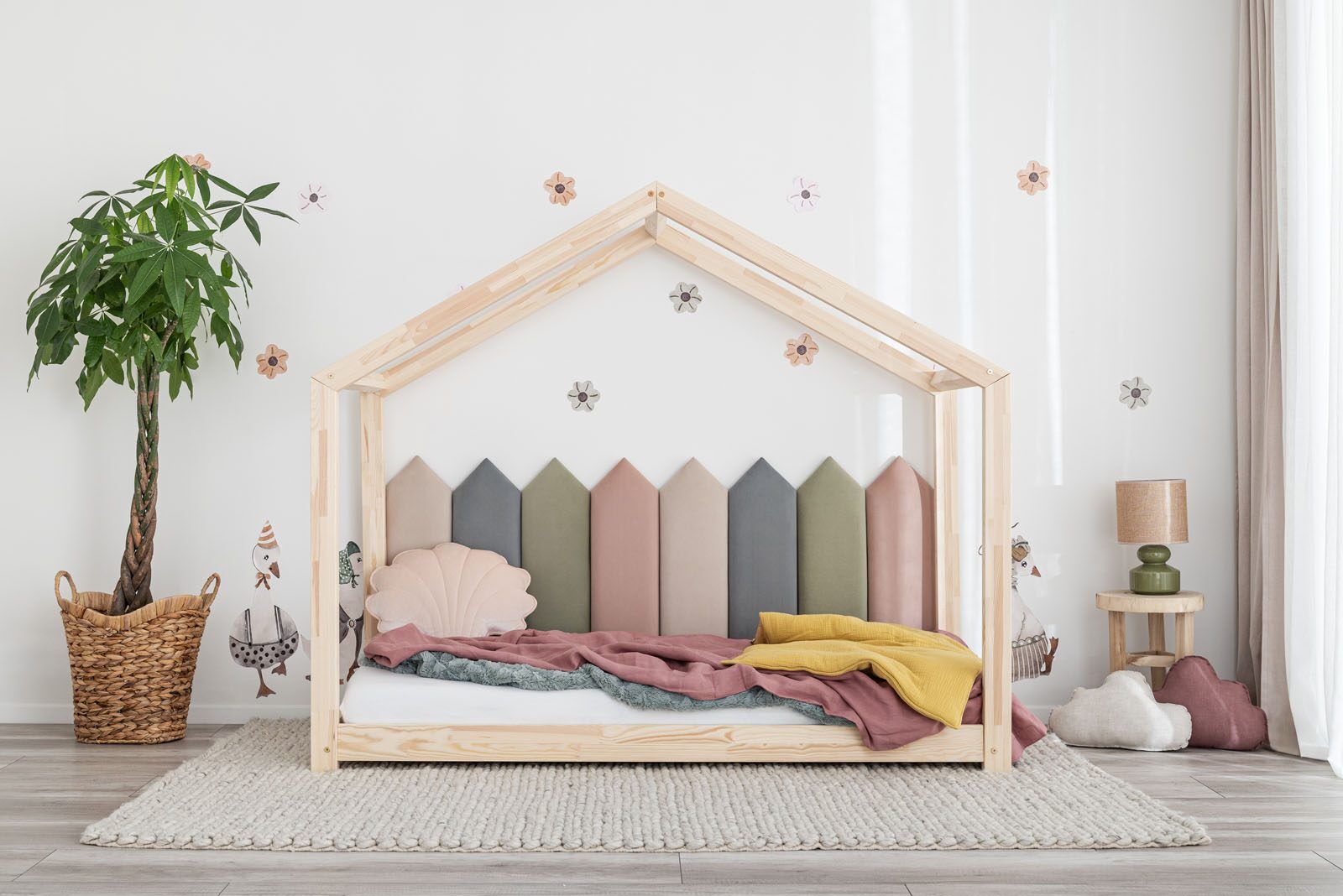 Panels can be used in a multitude of ways in interiors. They will look beautiful as a bed headrest and are also perfect as a backrest at various types of benches or as decorative details in alcoves. A splendid idea would be to use upholstered panels in a child’s room. They will be a fantastic addition to our House Bed.