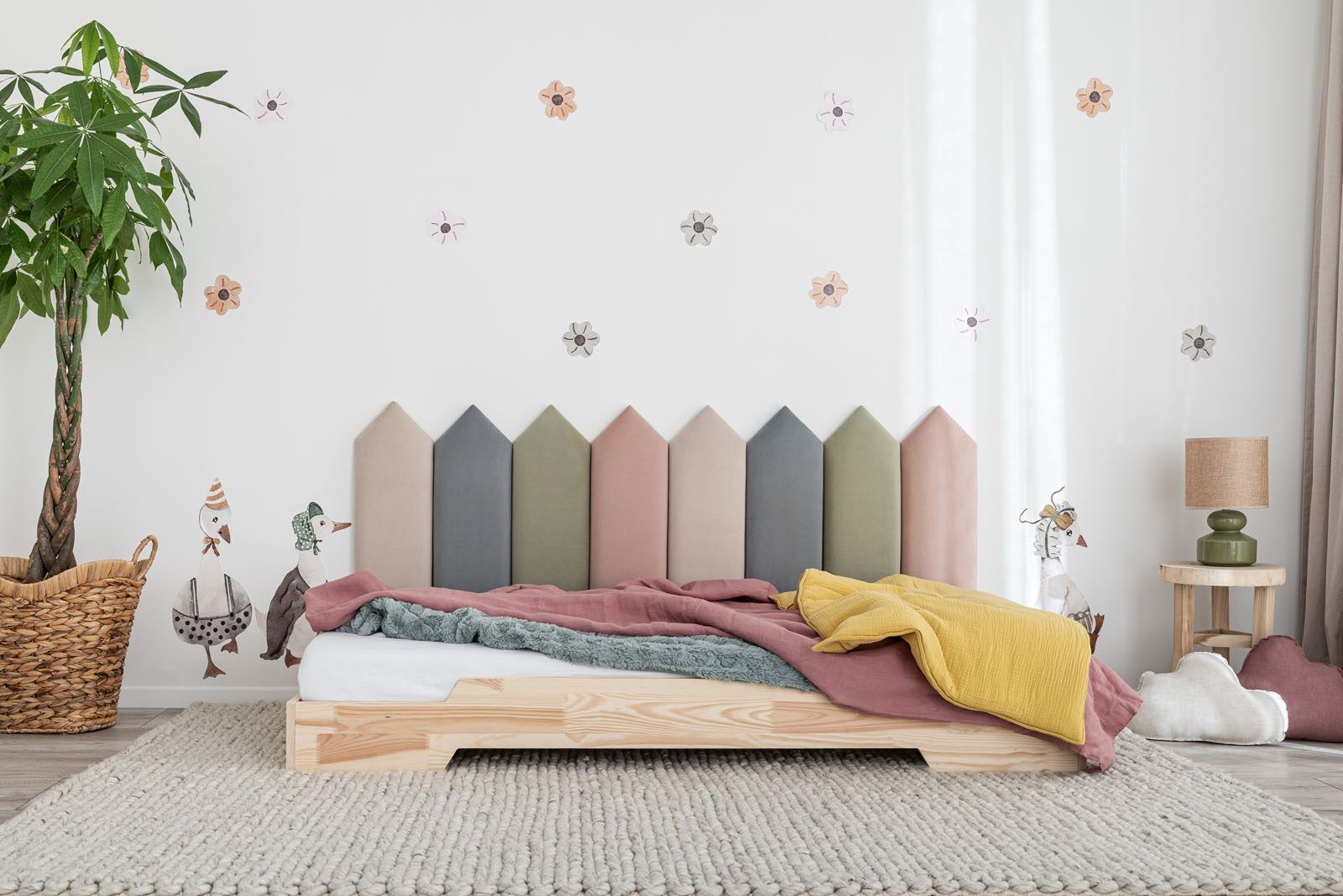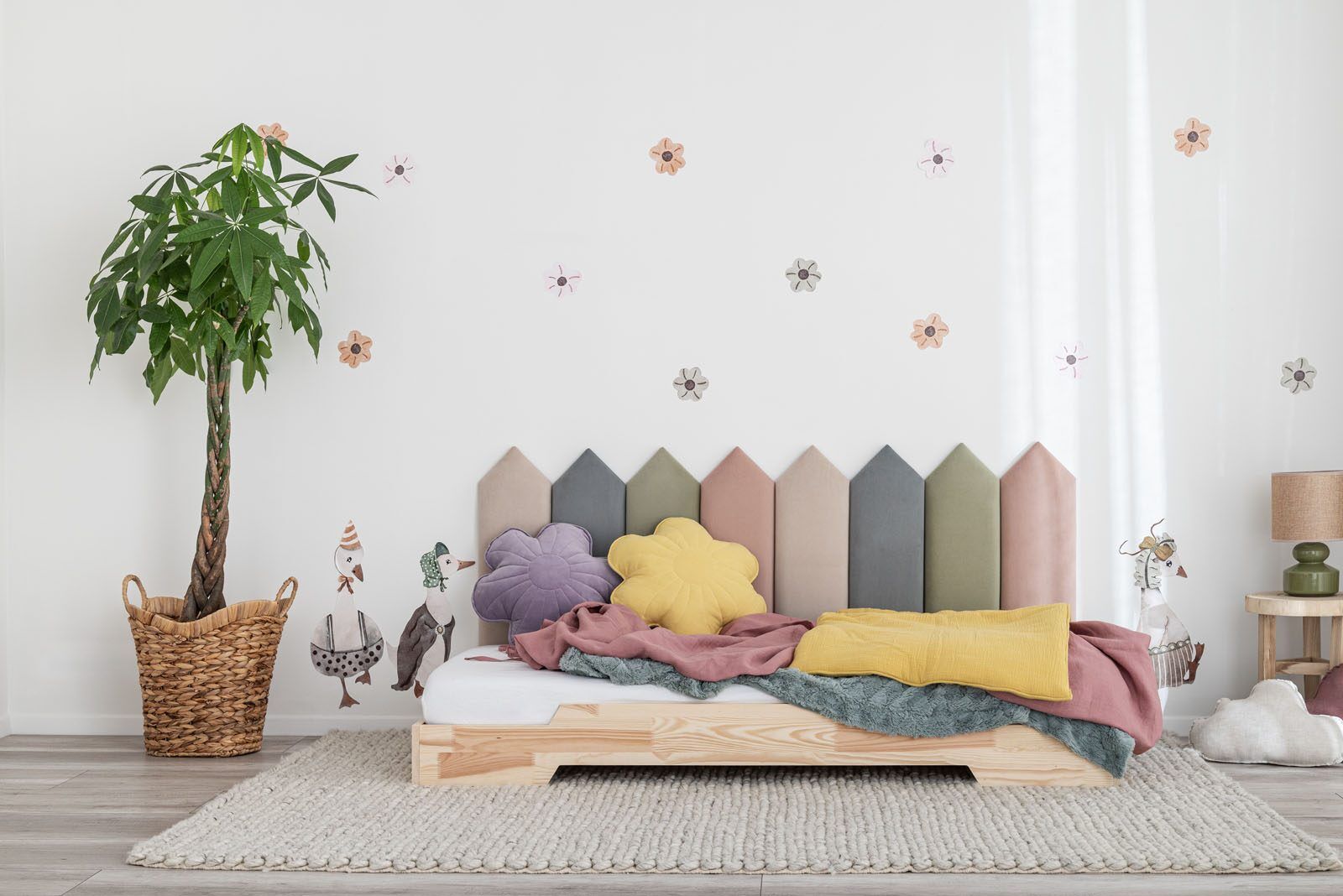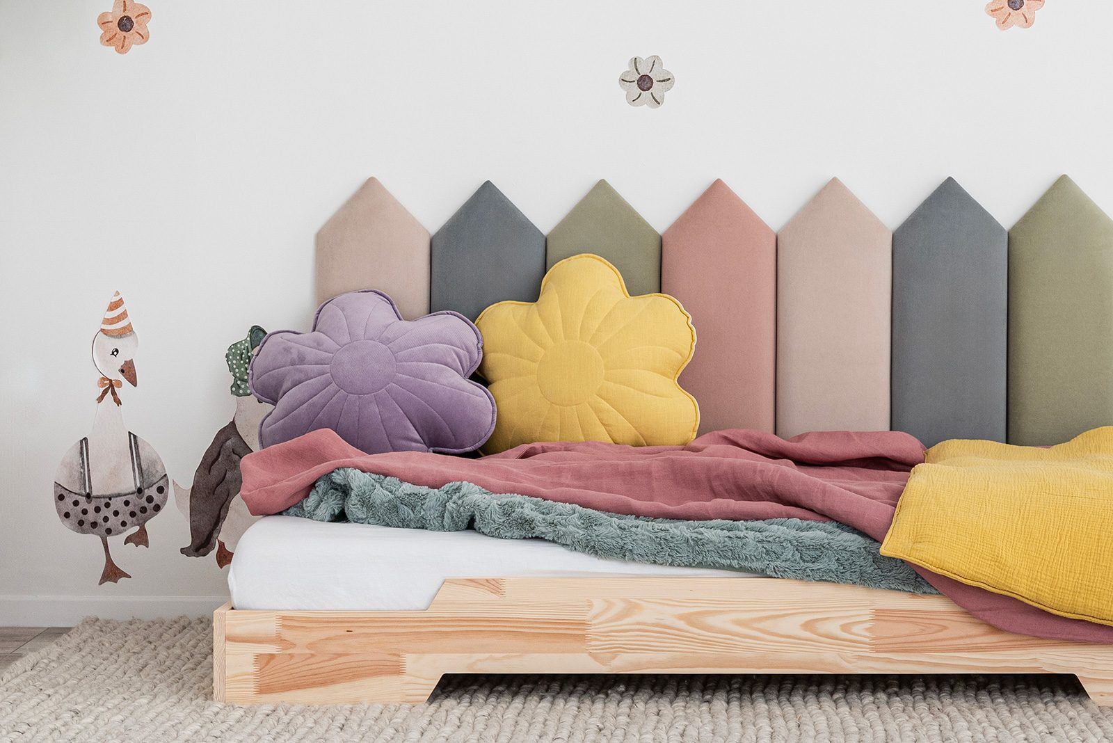 Incl. VATSoft, upholstered wall panels are the perfect addition to a child’s bed.