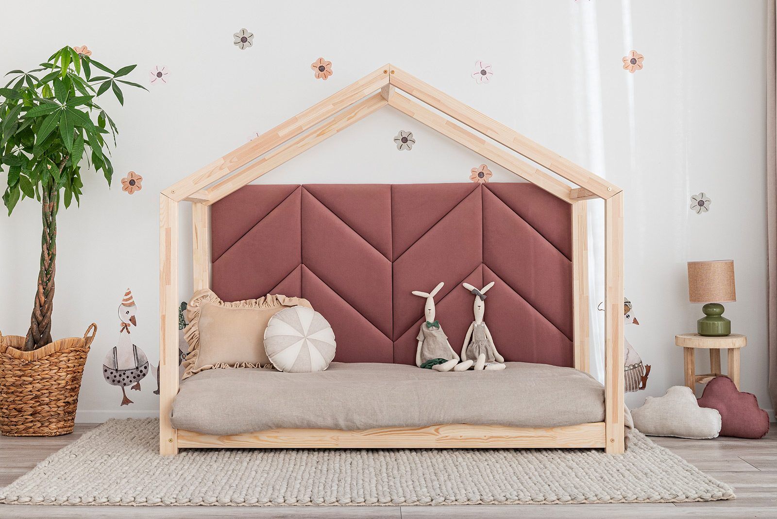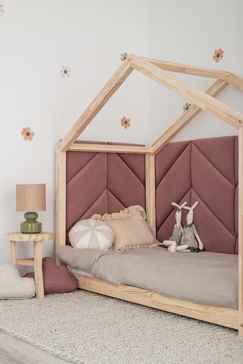 Panels can be used in a multitude of ways in interiors. They will look beautiful as a bed headrest and are also perfect as a backrest at various types of benches or as decorative details in alcoves. A splendid idea would be to use upholstered panels in a child’s room. They will be a fantastic addition to our House Bed.