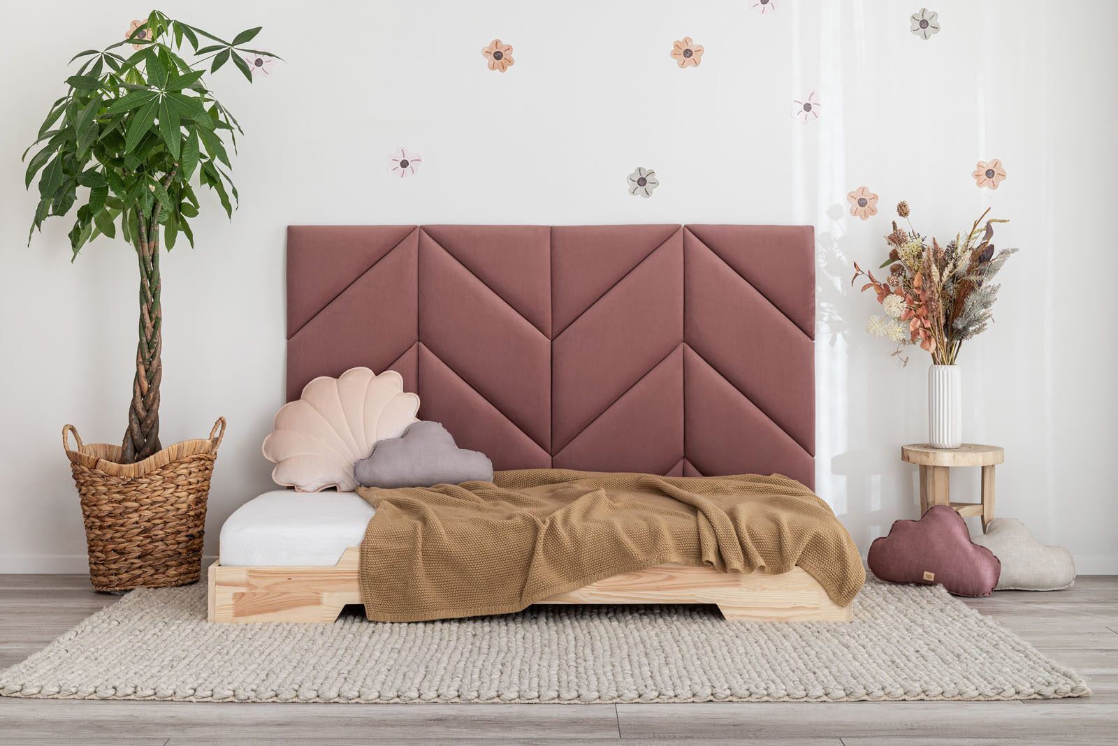 Velveteen upholstered panels make any interior unique and special. Their undisputed advantage is their very good thermal and acoustic insulation, which allows the room to become more comfortable and cosy. Thanks to being easily to assemble, the panels are perfect as elegant headrests, decora-tive backrests, original alcove fillers and as a fantastic addition to a child’s room.