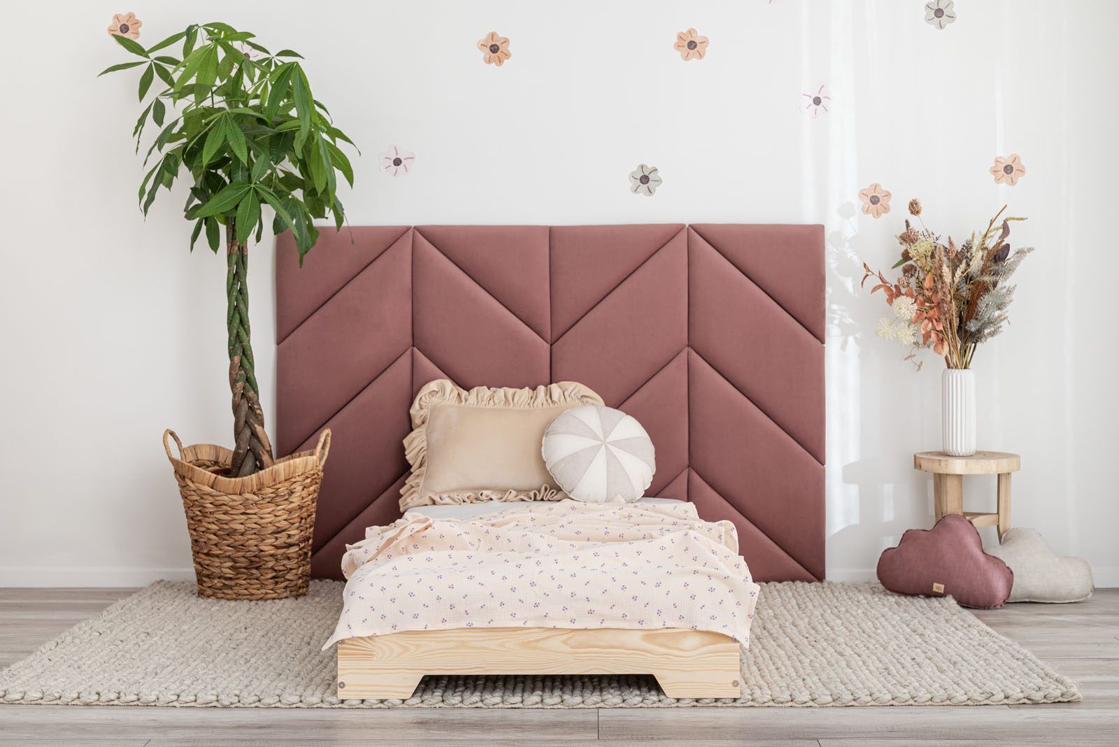 Incl. VATSoft, upholstered wall panels are the perfect addition to a child’s bed.